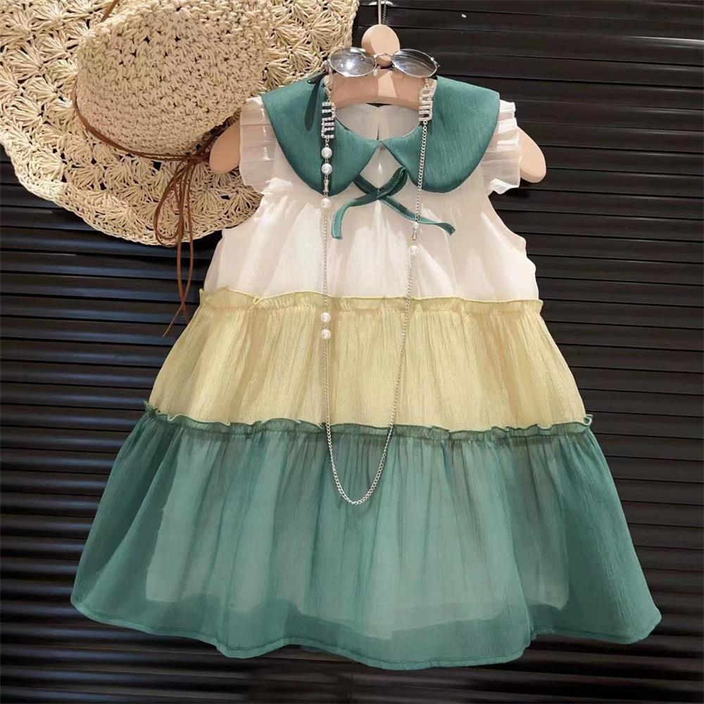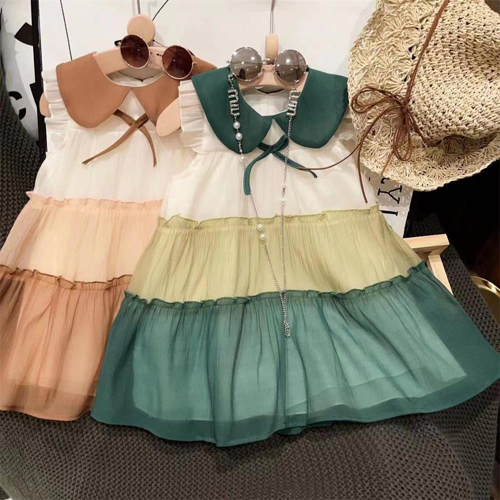 新品领花边飞袖拼纱甜美公主背心裙2025夏装裙子无袖多色蛋糕