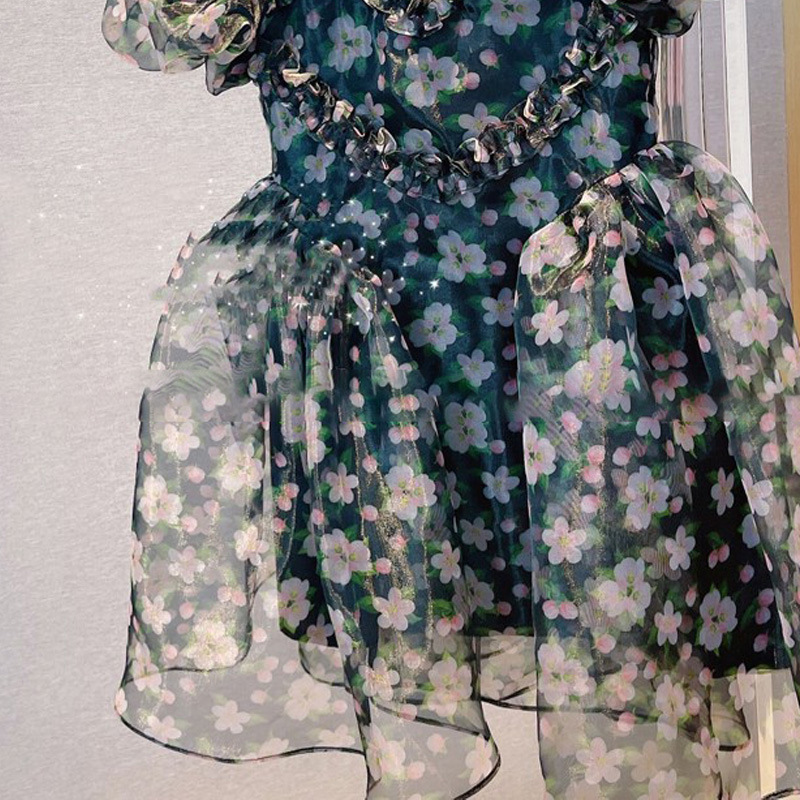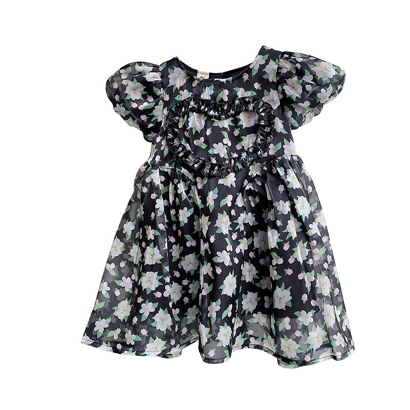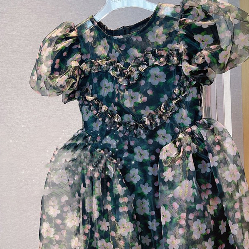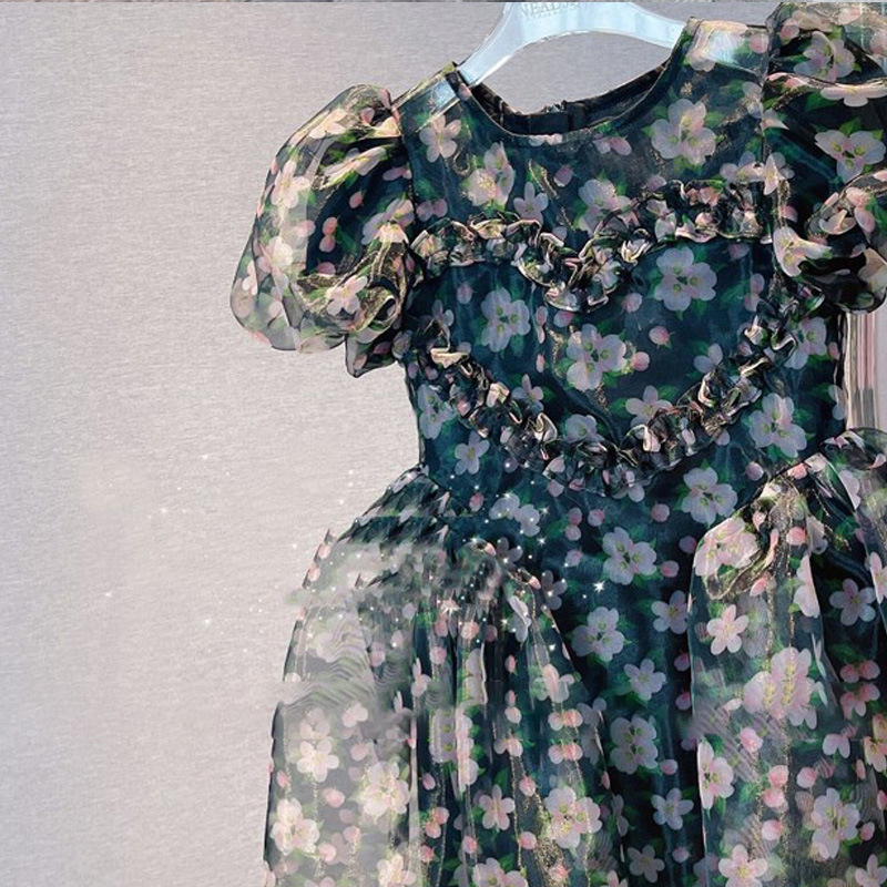 女童泡泡短袖连衣裙2025夏季新款韩版宝宝欧根纱公主裙儿童礼服裙