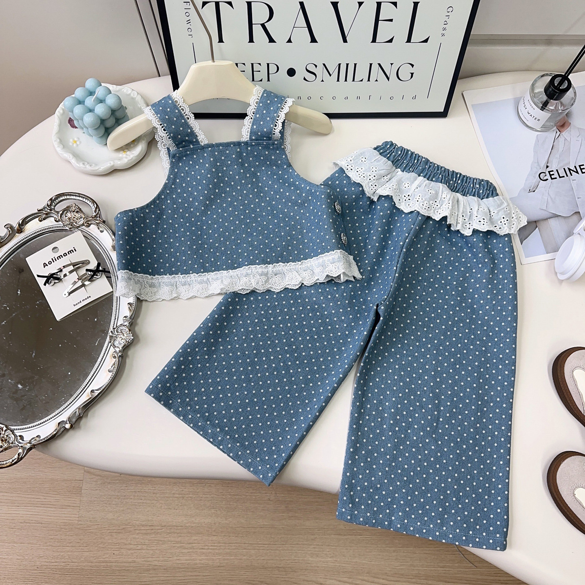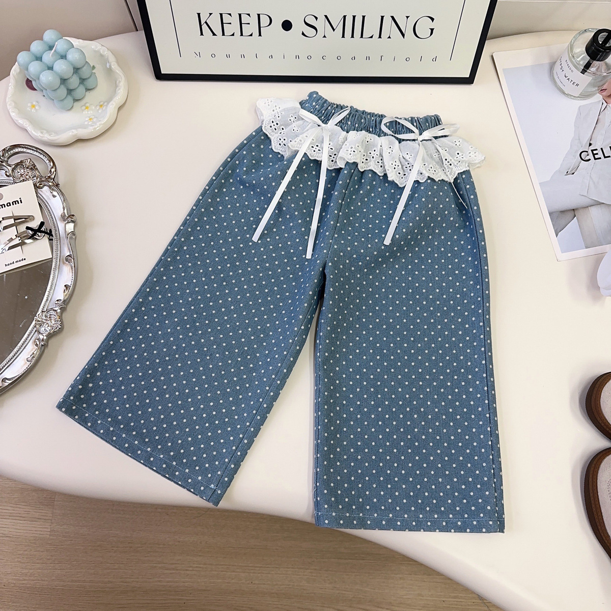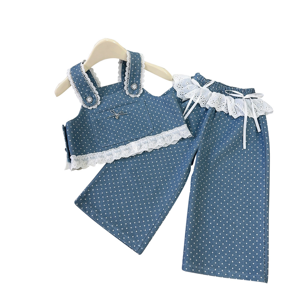 2025新品女童牛仔套装春秋季新款女宝甜美蕾丝牛仔上衣裤子两件套