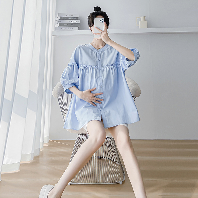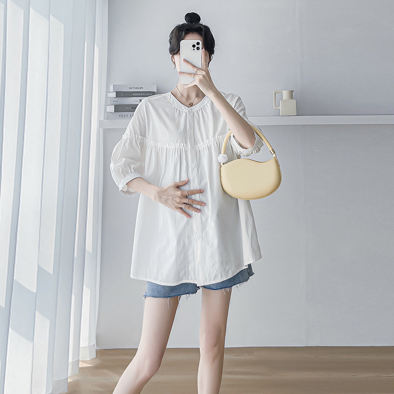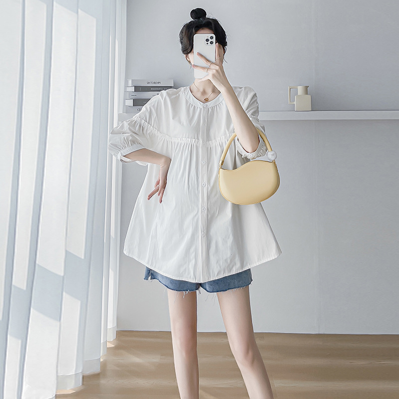 孕妇衬衫半身裙孕妈春夏季娃娃衫上衣孕妇白色衬衫职业工装夏宽松