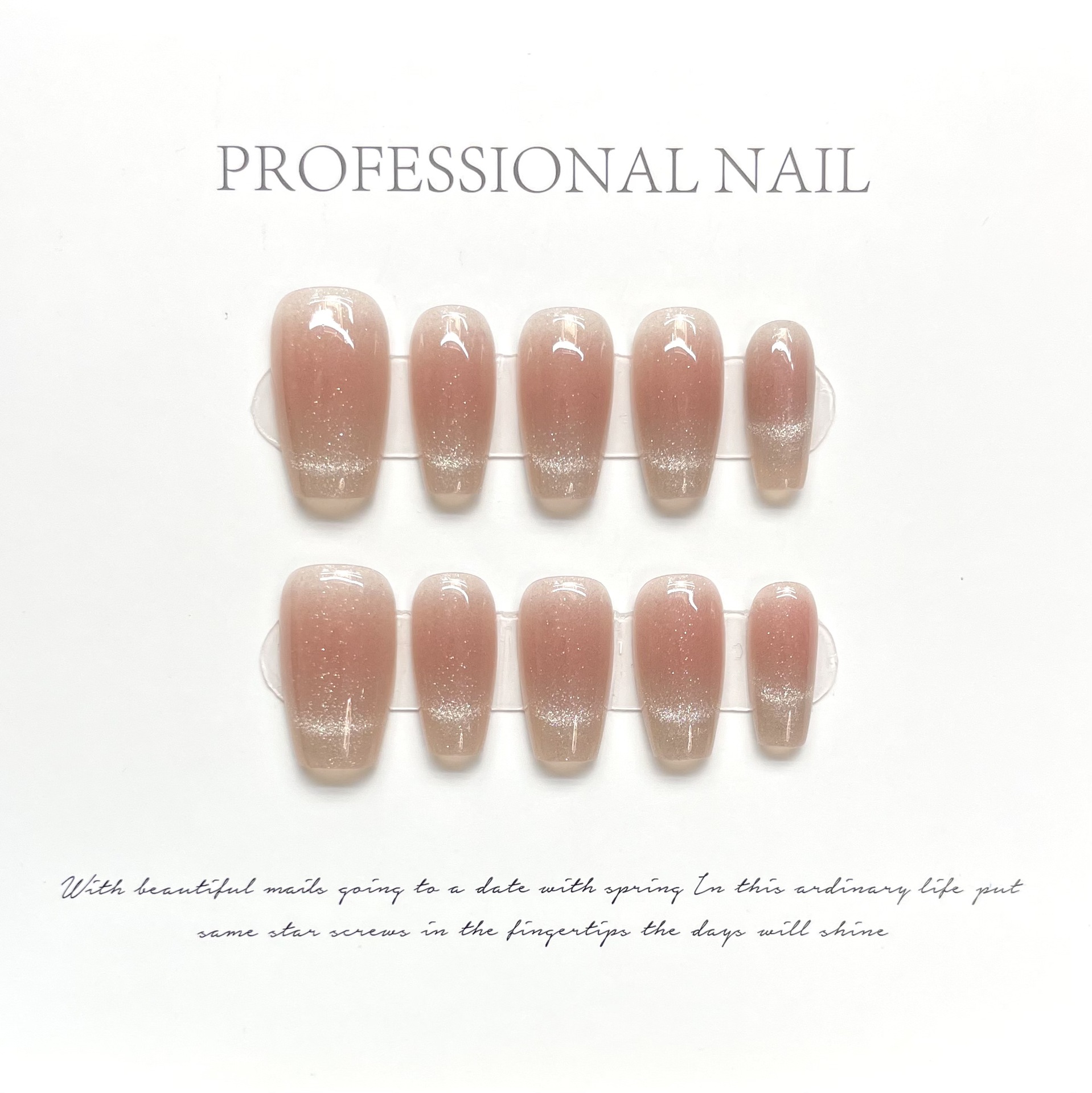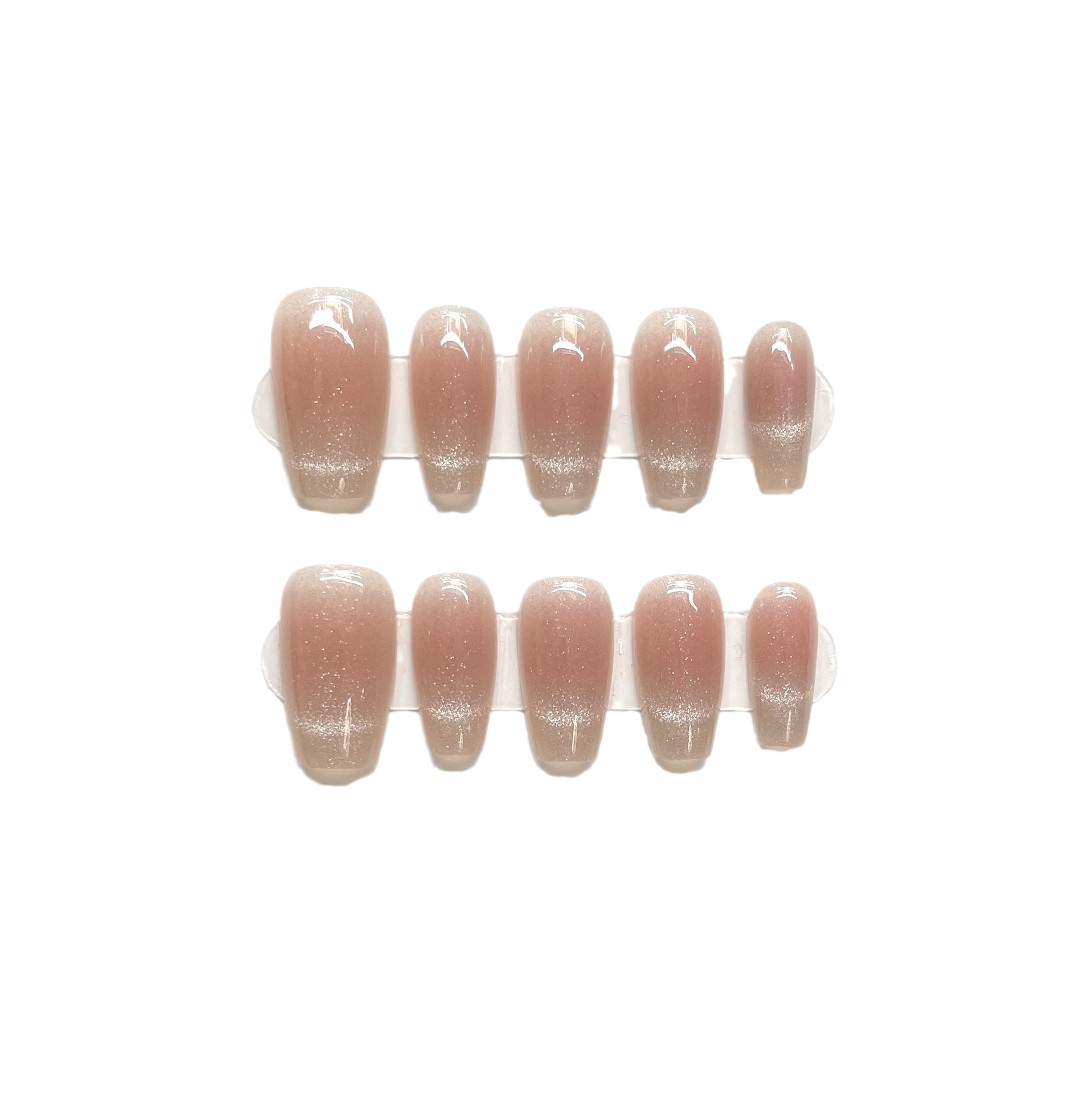 【原创实拍】蜜桃猫眼显白纯手工穿戴甲成品粉色春夏可拆卸美甲贴