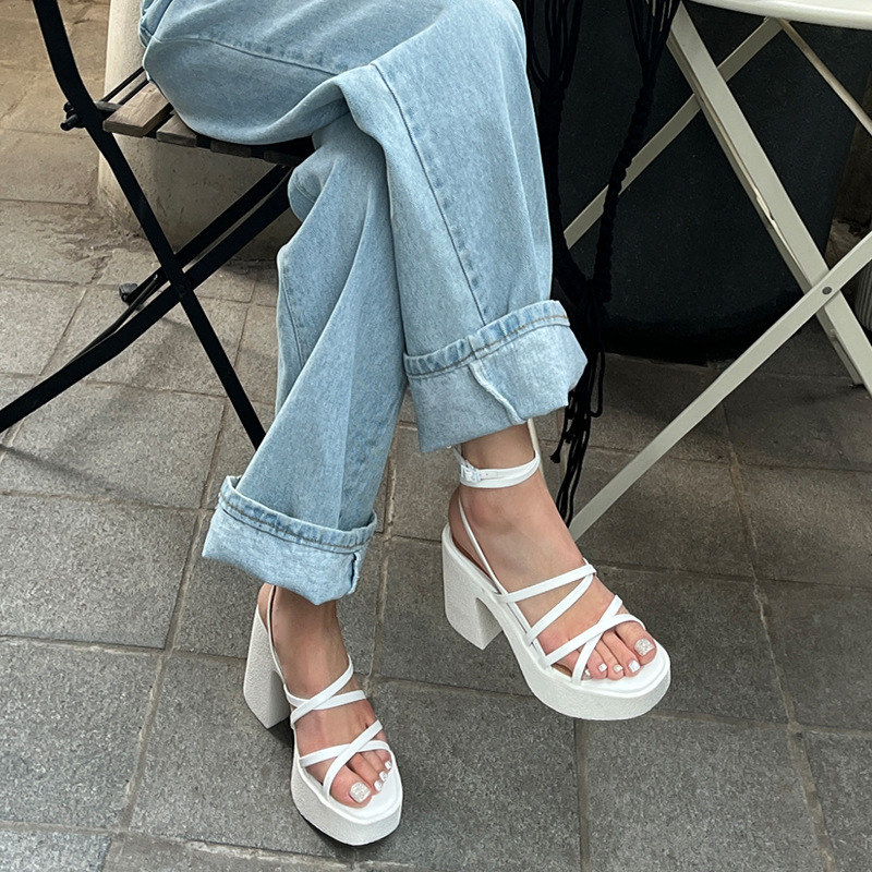 夏季凉鞋女粗跟简约一字带2025年夏季新款百搭仙鞋绑带高跟鞋气质