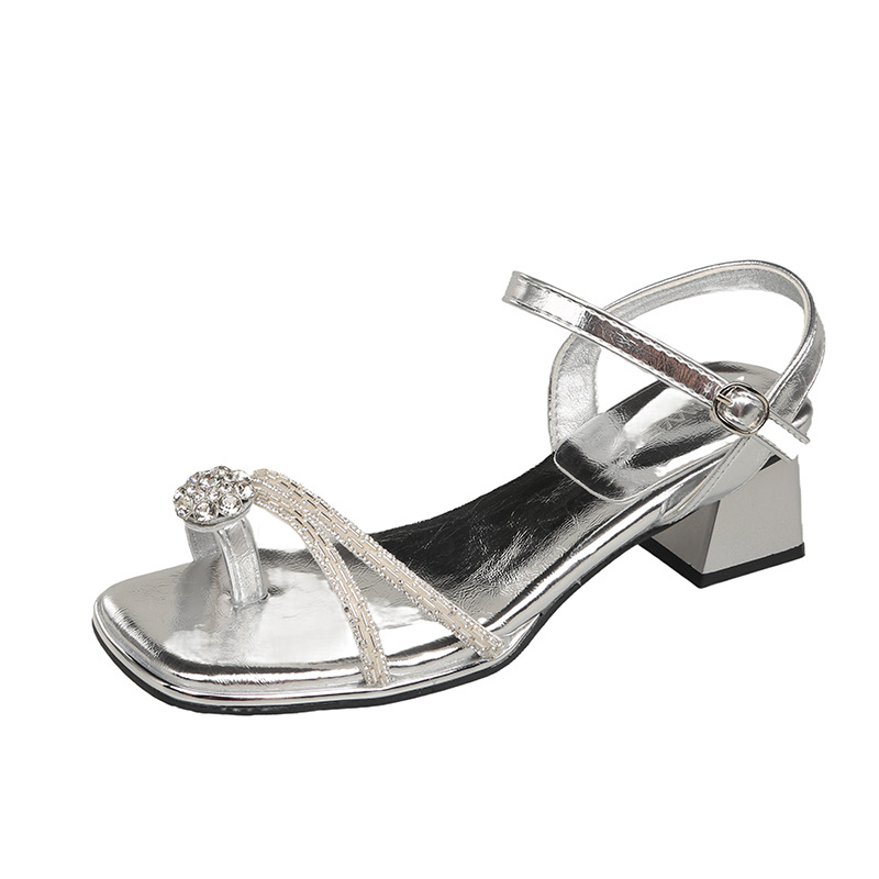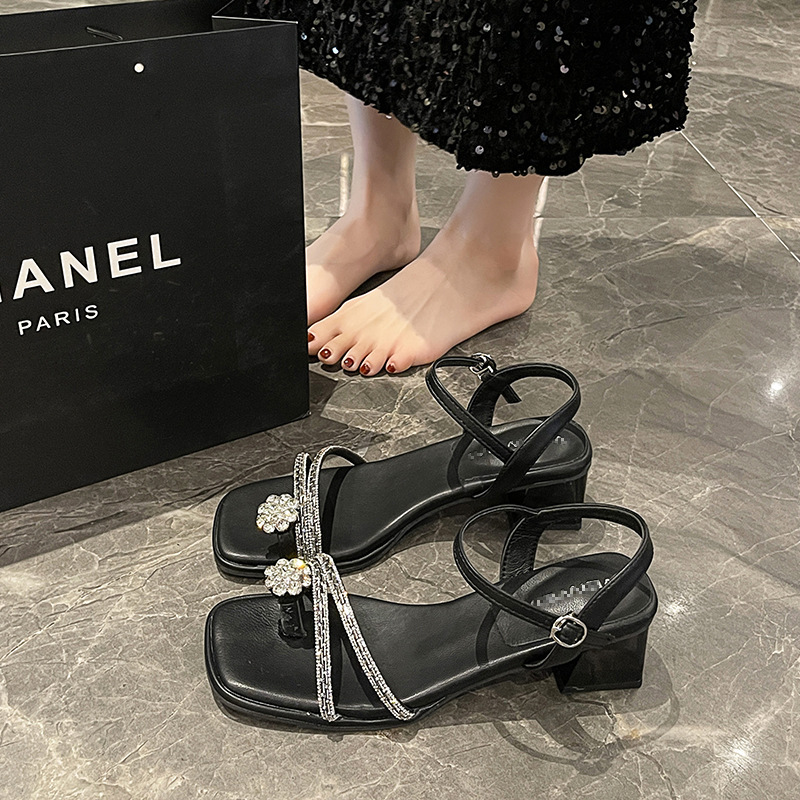 凉鞋女性感水钻外穿粗跟套趾女士不累脚凉鞋舒适高跟女鞋