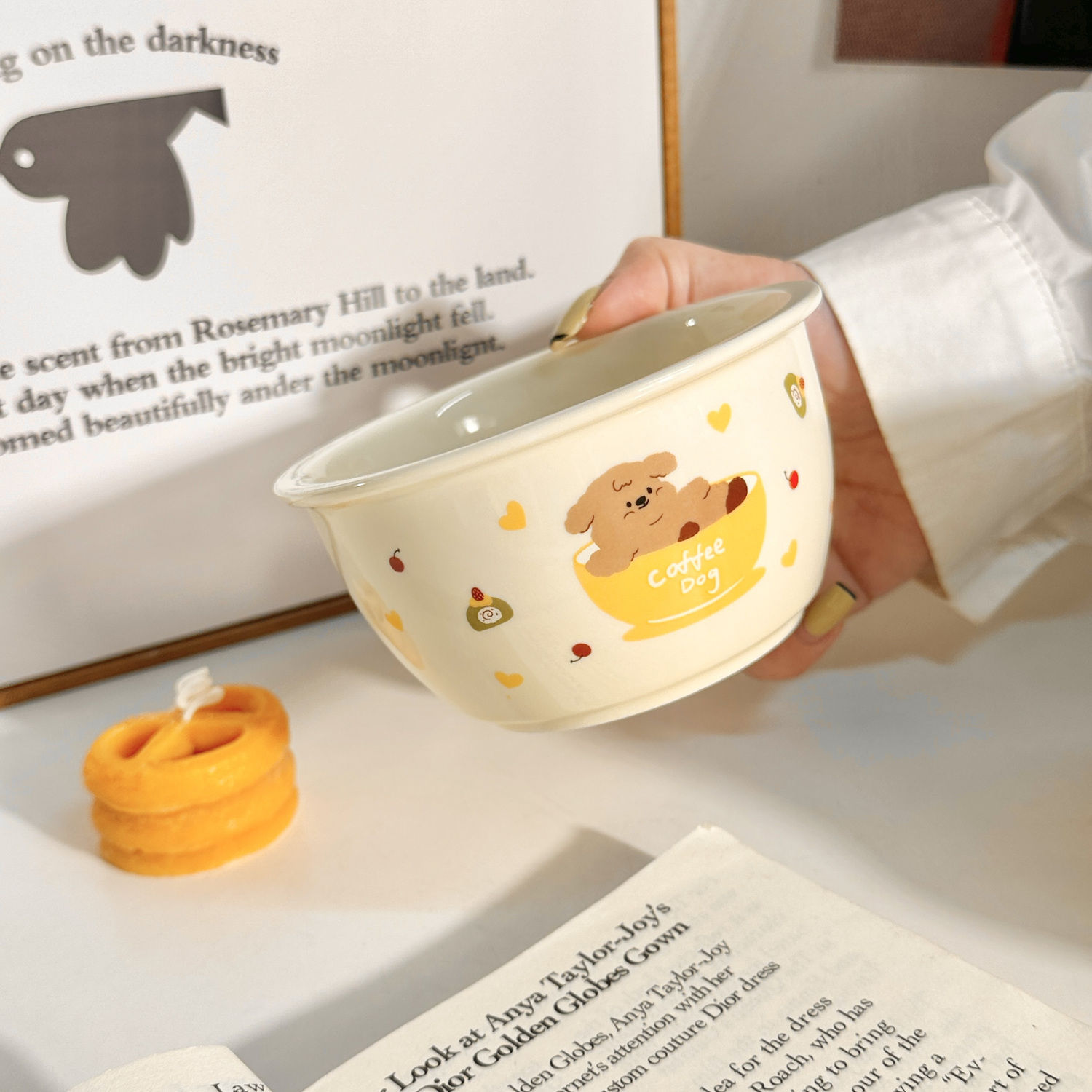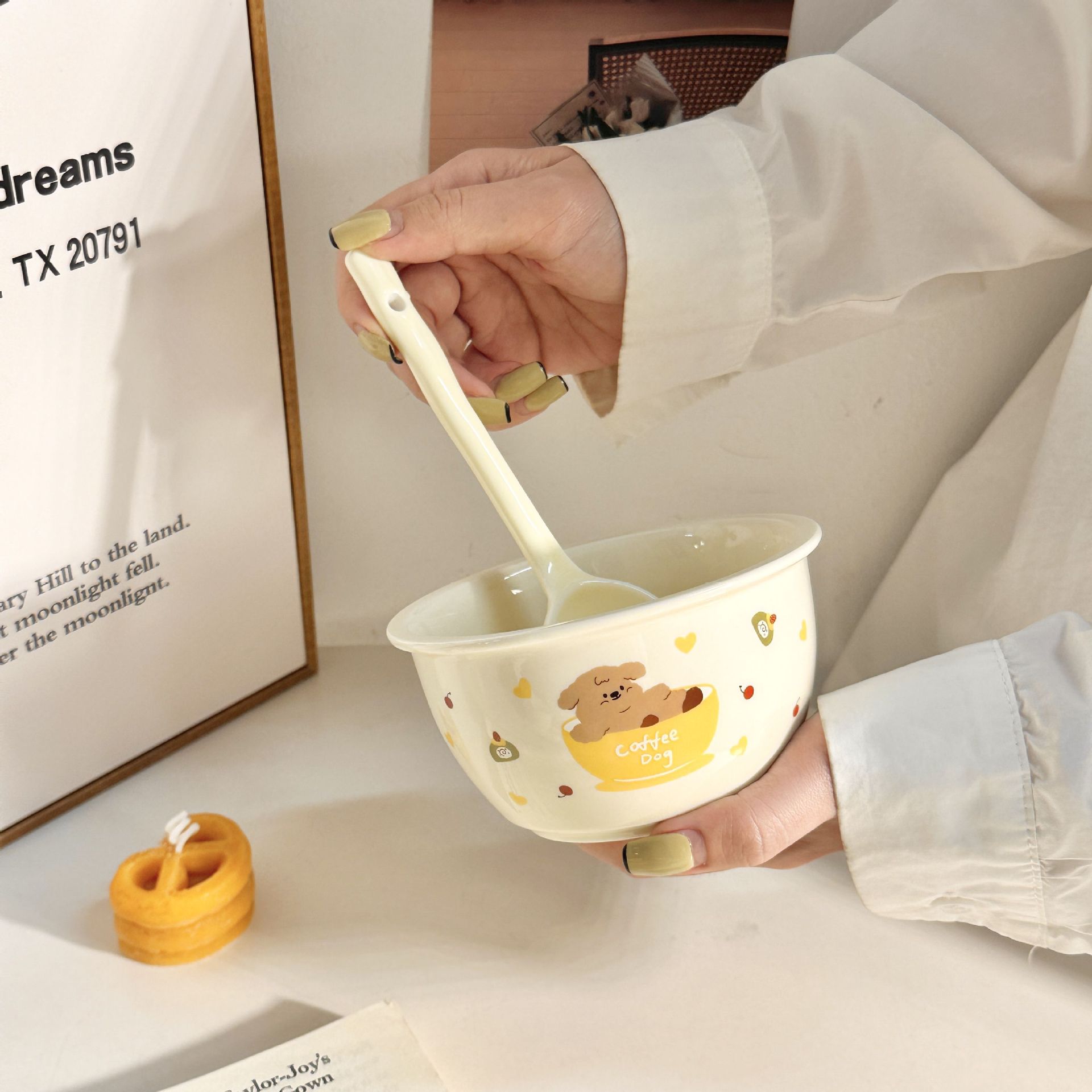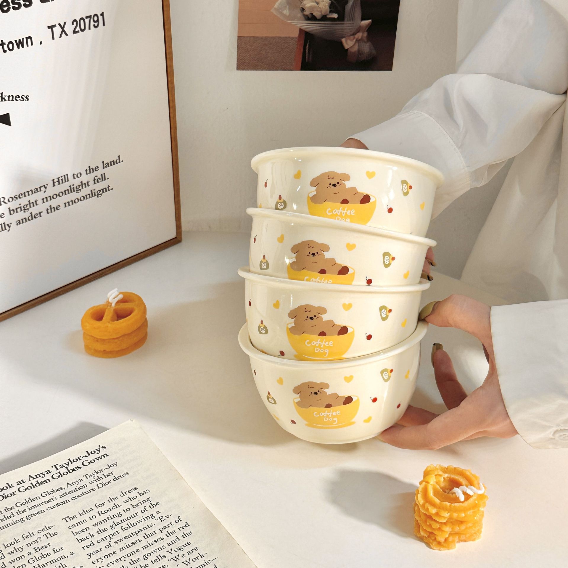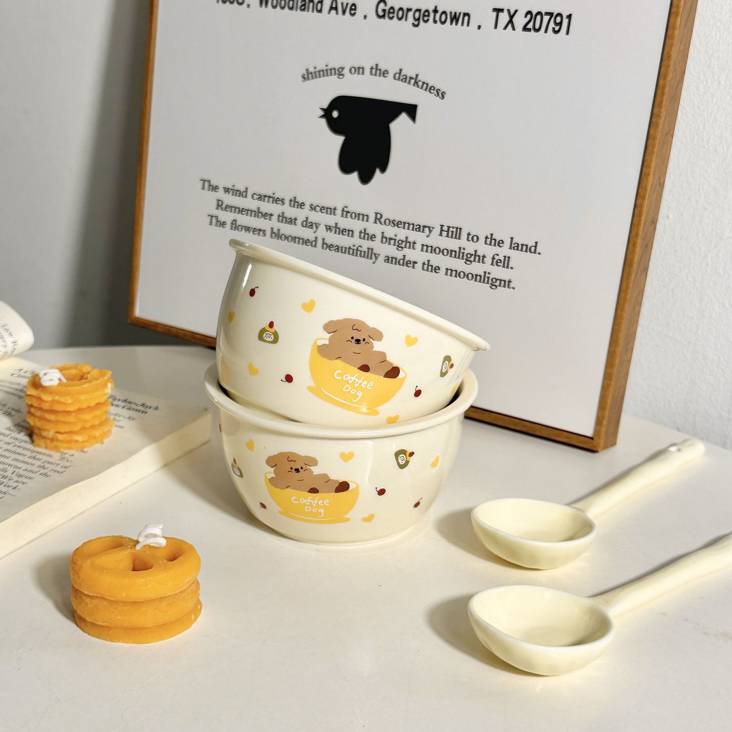 ins可爱风奶油狗米饭碗情侣餐具陶瓷甜品碗釉下彩家用碗勺套装