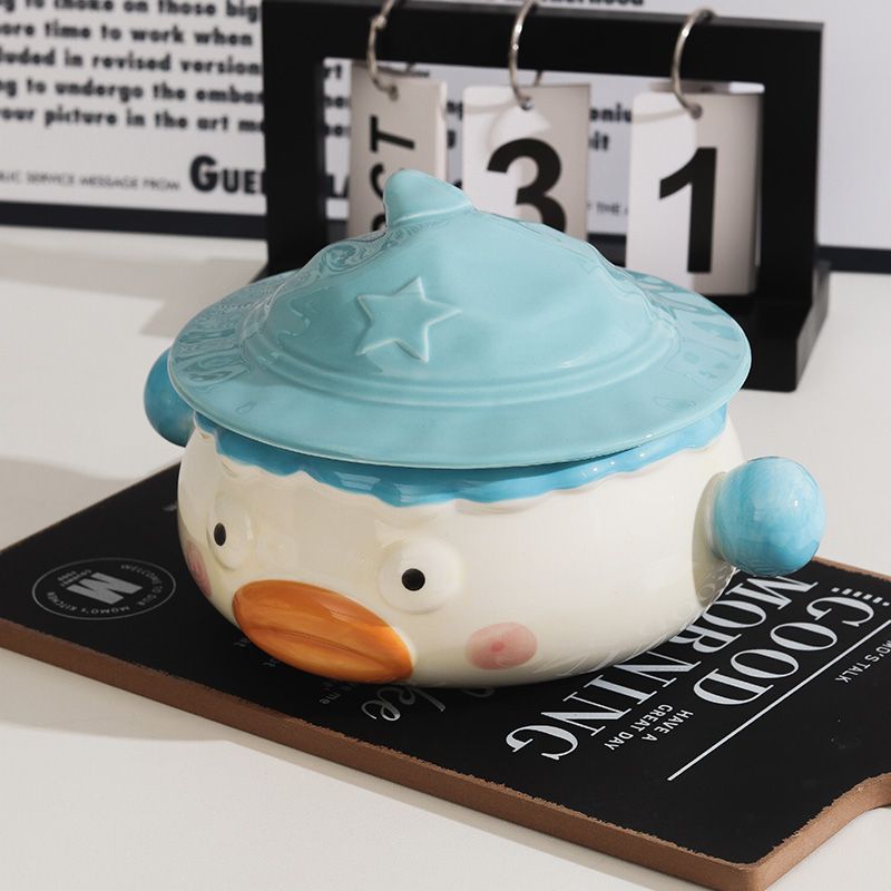 小丑泡面碗陶瓷宿舍学生带盖带手柄可爱创意搞怪宽口大号方便汤碗