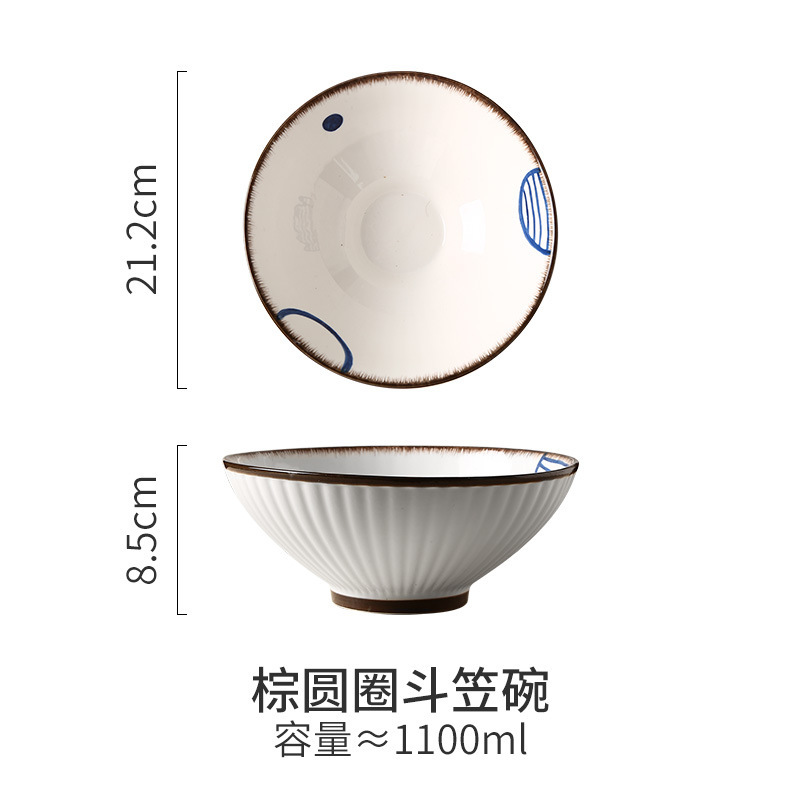 雅居陶瓷日式餐具家用斗笠面碗批发创意拉面碗网红泡面碗汤碗