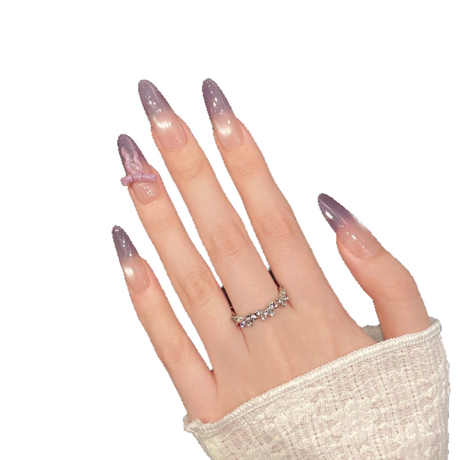 艺禾【馨香罗兰】淡紫色渐变长款猫眼温柔气质可拆卸手工穿戴甲