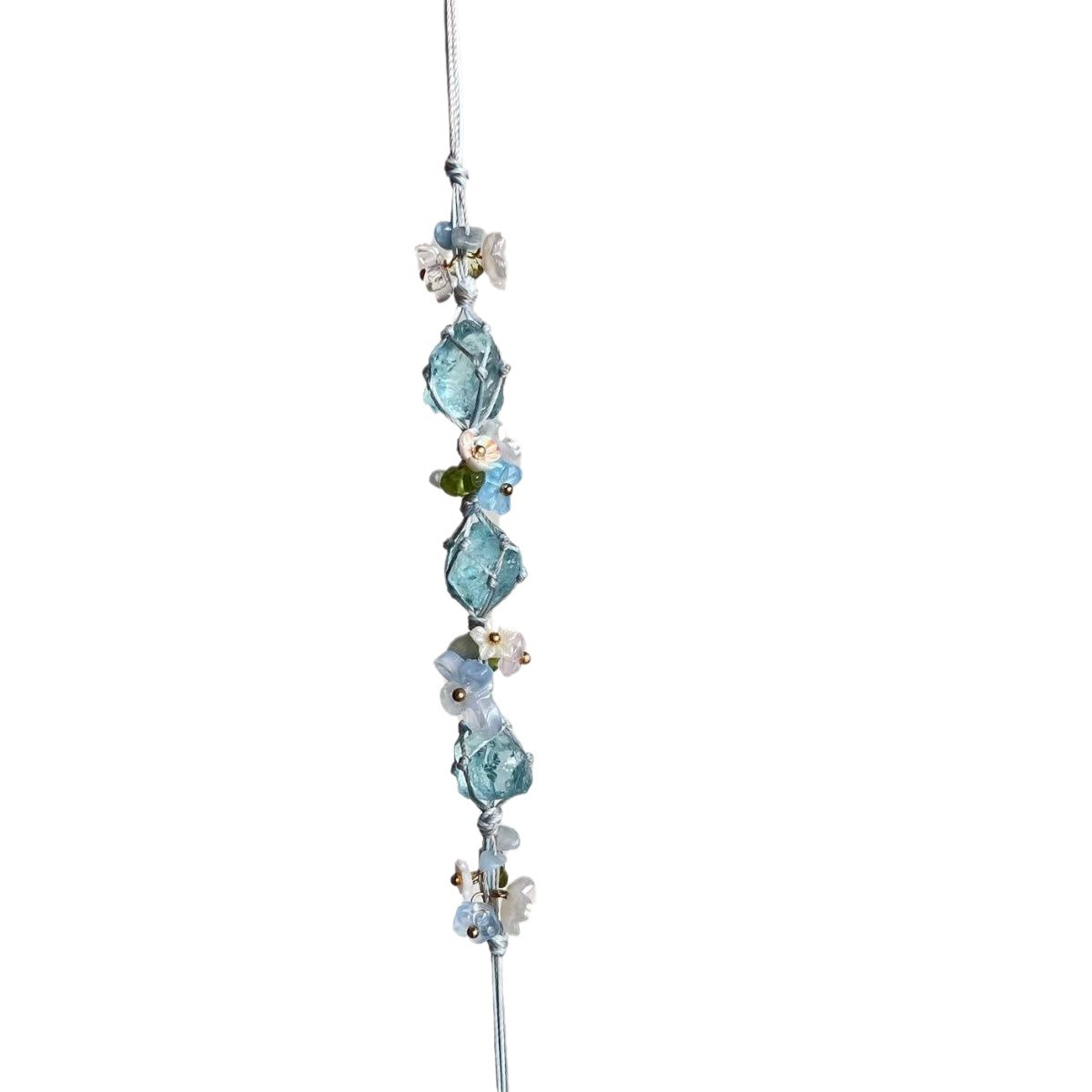 原创设计合成水晶原石编织手链一汪“清泉”薄荷蓝蓝琉璃手绳
