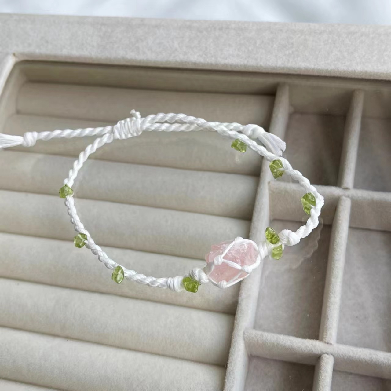 原创设计macrames手工编织水晶小众手链手绳粉水晶荷花夏天手链女