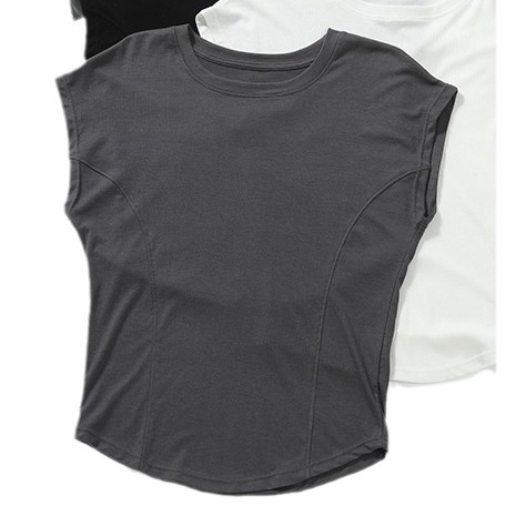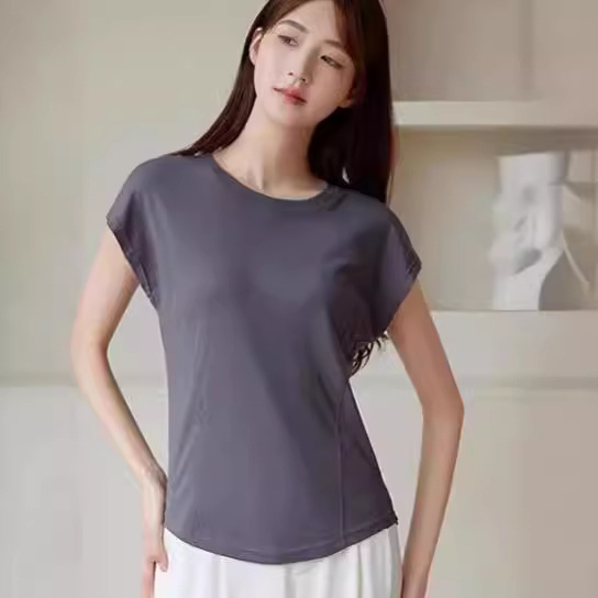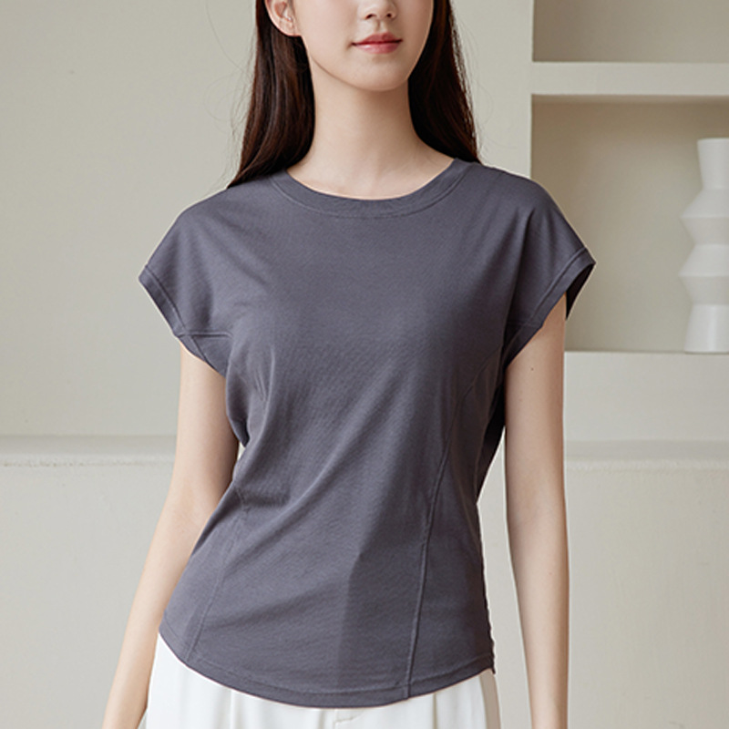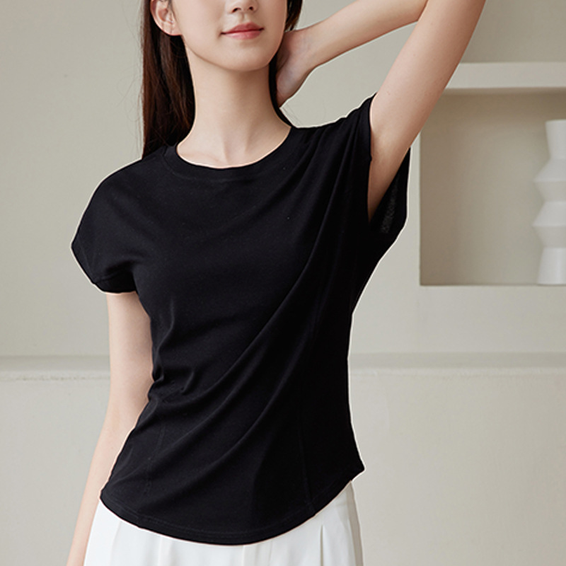 天丝蝙蝠袖圆领修身显瘦短袖t恤女设计感小众连袖纯色舒适上衣女