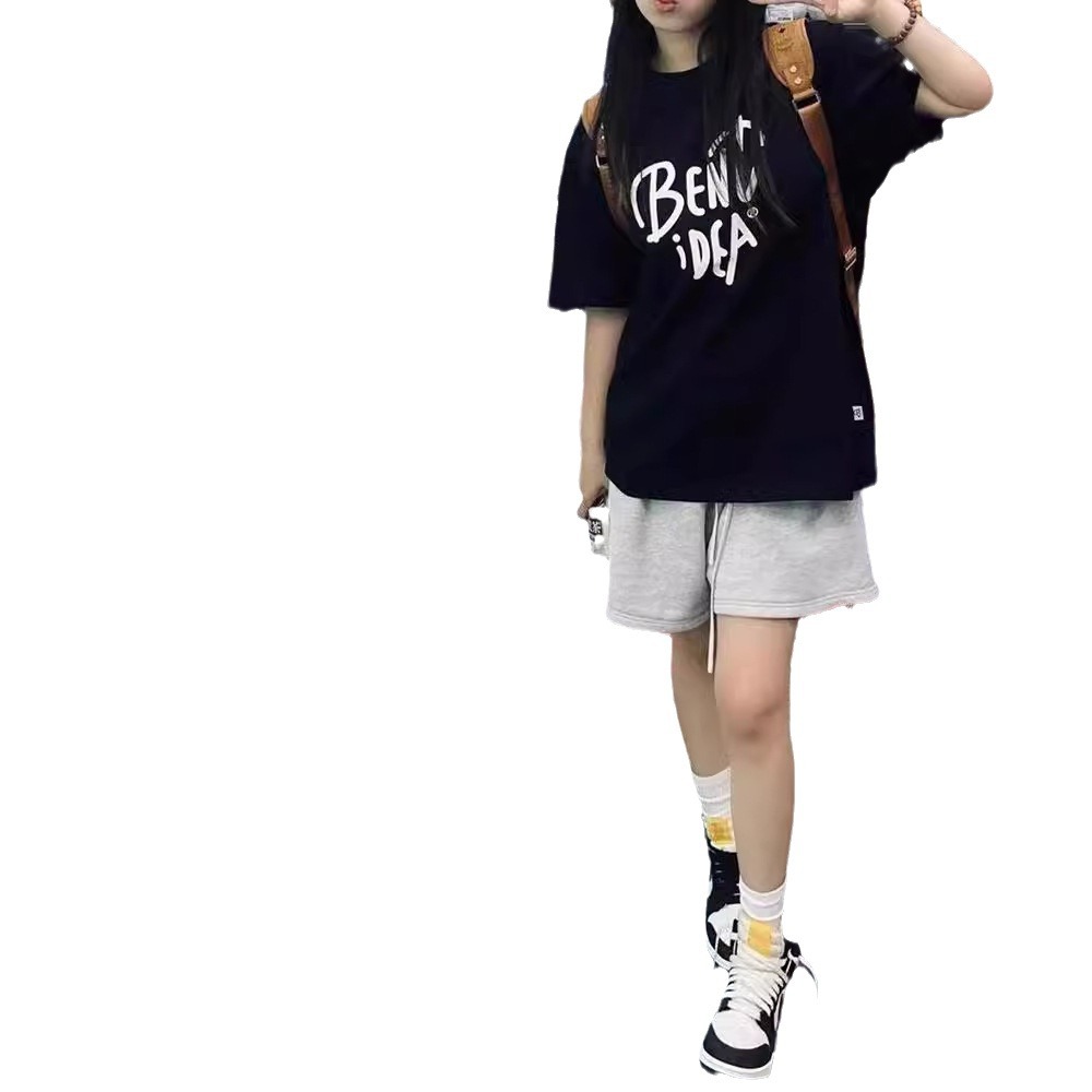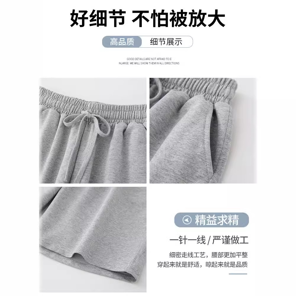 灰色运动短裤女夏季薄款高腰显瘦直筒阔腿中裤外穿休闲宽松五分裤