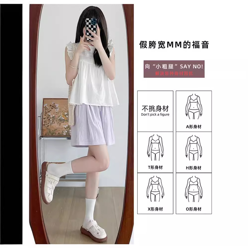 冰丝紫色山本短裤女夏季薄款新款高腰休闲阔腿中裤运动五分裤