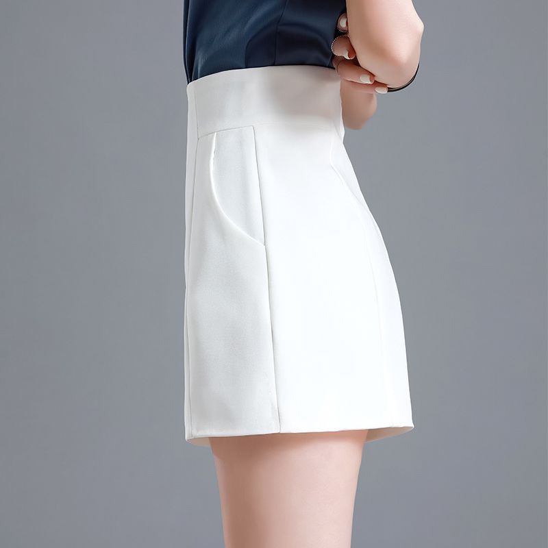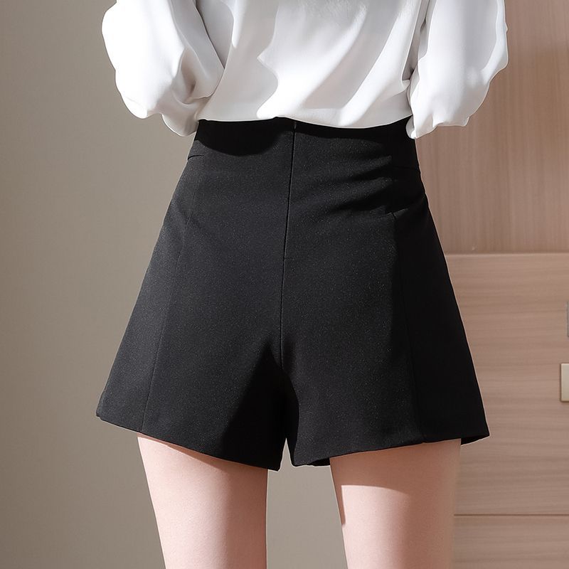 大码胖mm西装短裤女夏季薄高腰外穿休闲a字宽松显瘦黑色阔腿裤子