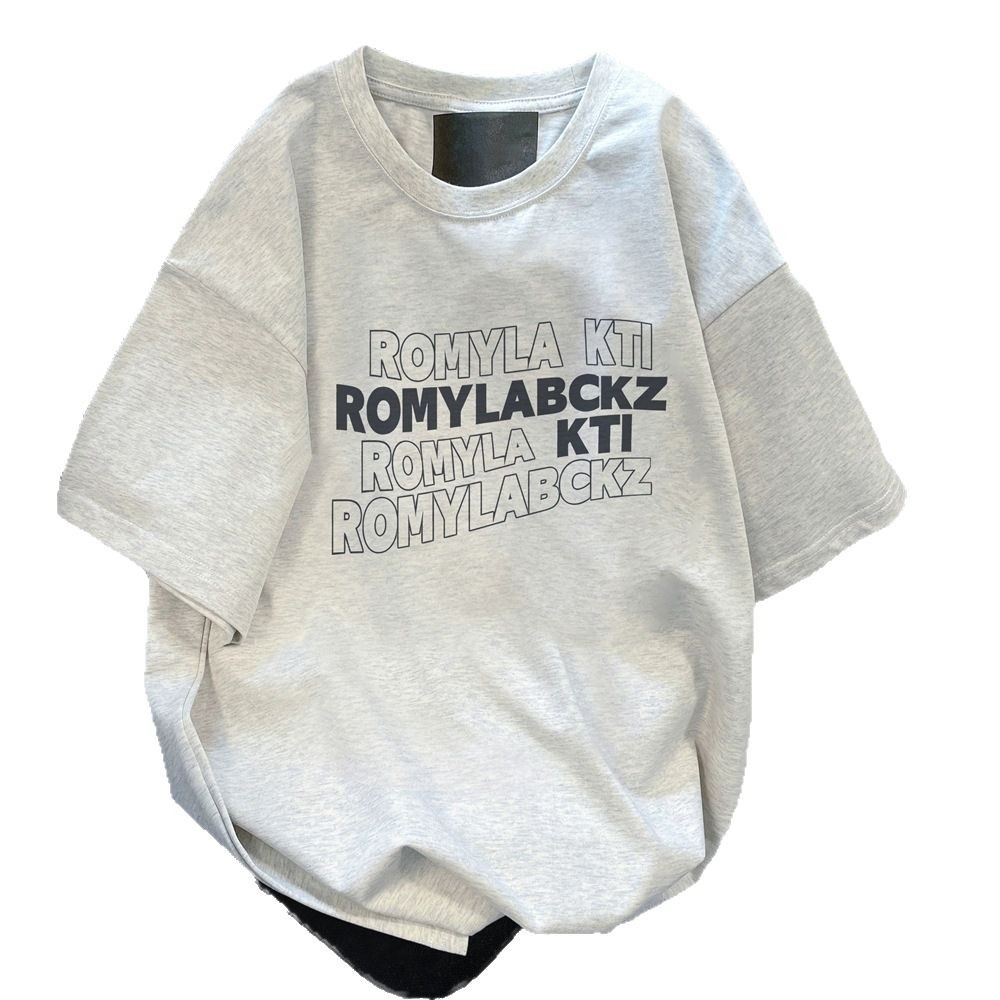 日系复古高级感百搭短袖t恤女夏季宽松洋气欧货大版半袖上衣体恤