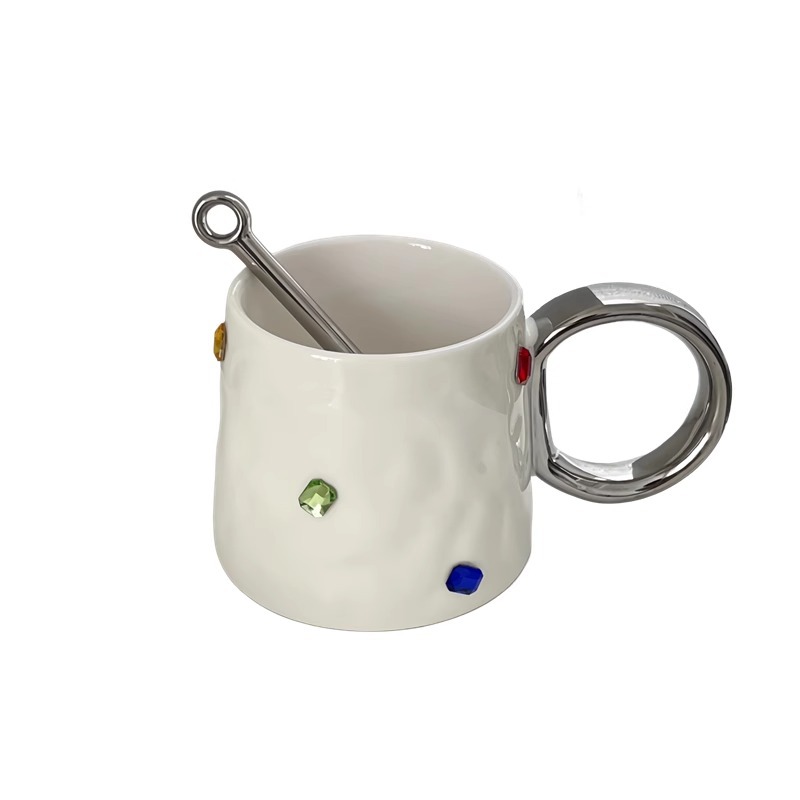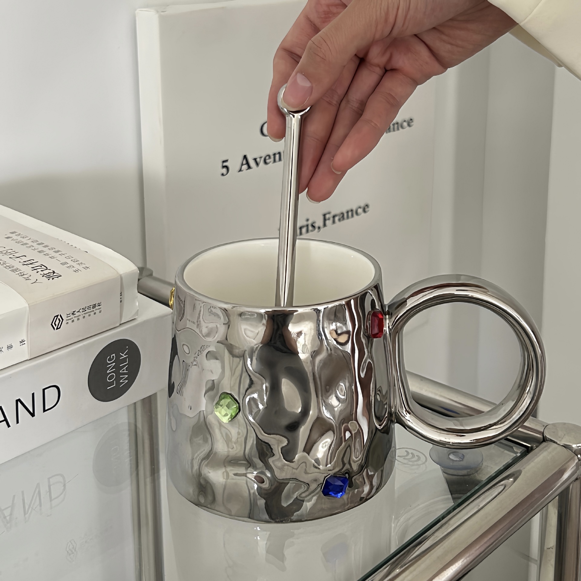 ins高级感小众设计陶瓷辣妹风宝石马克杯咖啡杯水杯情侣杯送勺子