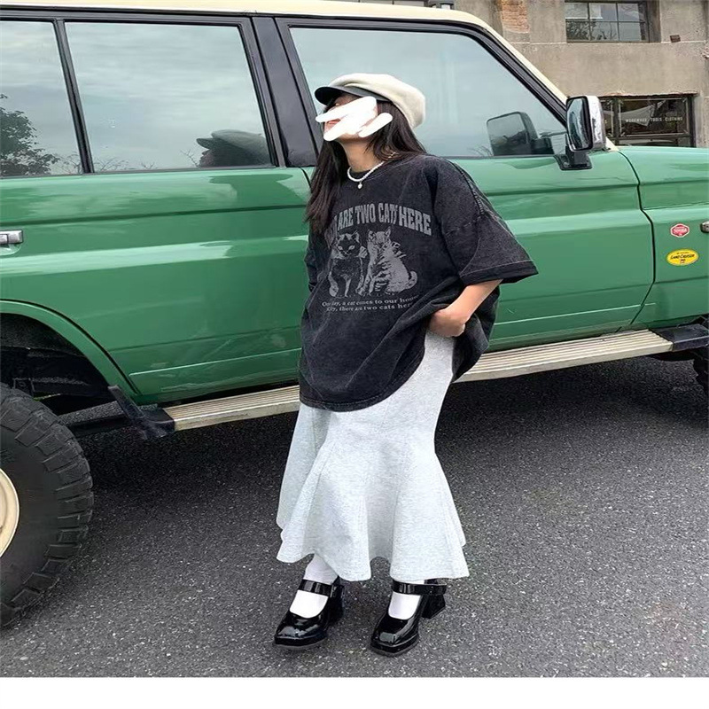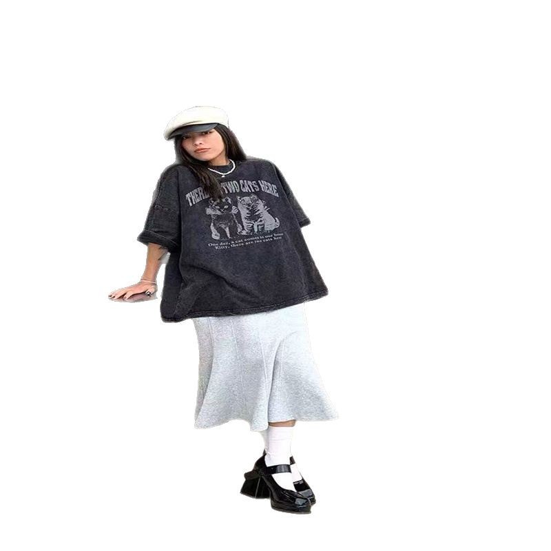 男女夏oversize美式复古水洗短袖女小众设计感洗水做旧宽松T恤女
