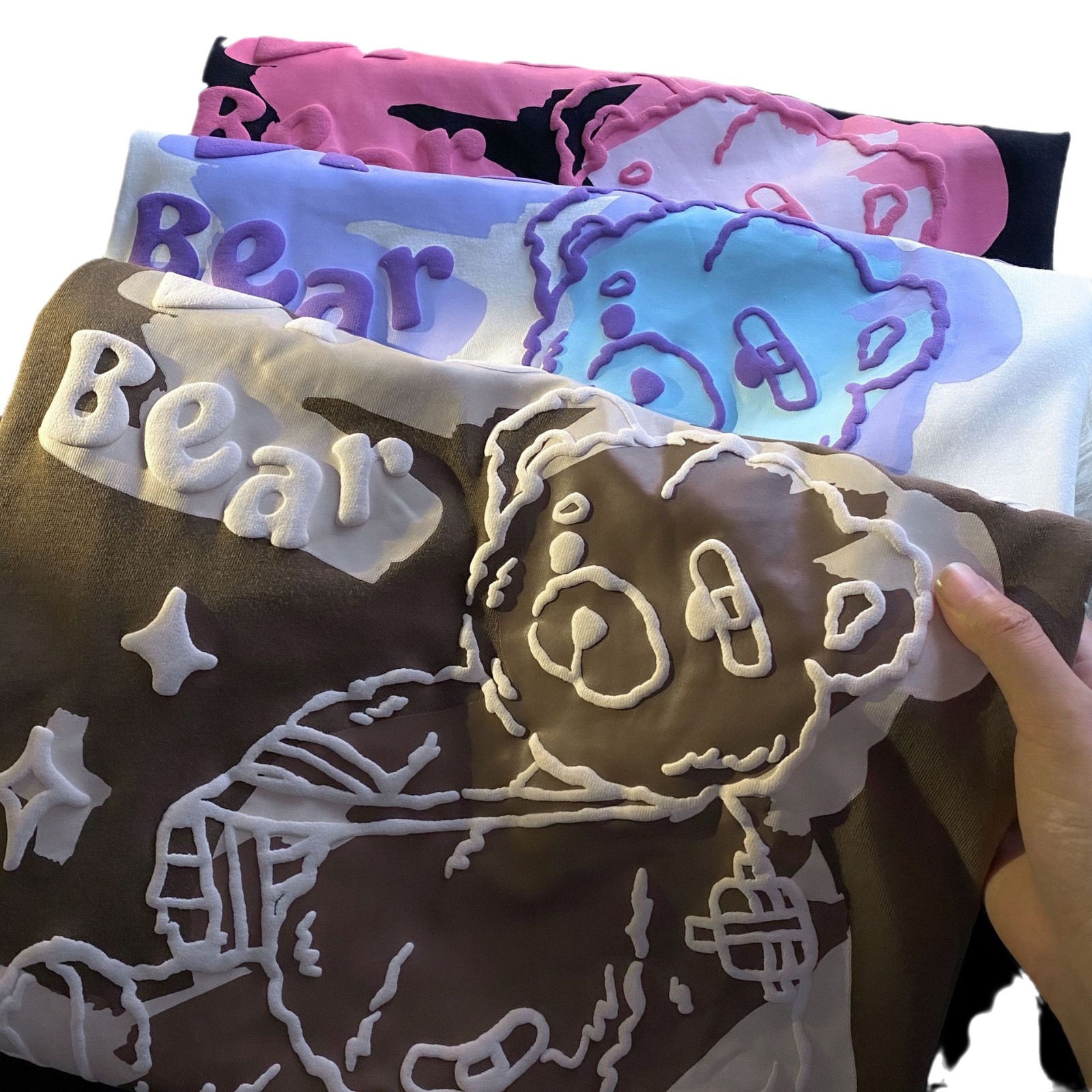 大码小熊t恤女美式复古oversize含棉短袖ins潮卡通涂鸦胖上衣夏季