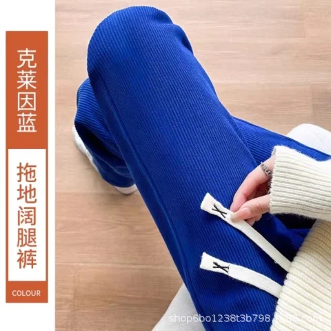 窄版阔腿裤女春秋款运动裤学生2025新款雪尼尔裤子休闲百搭直筒裤