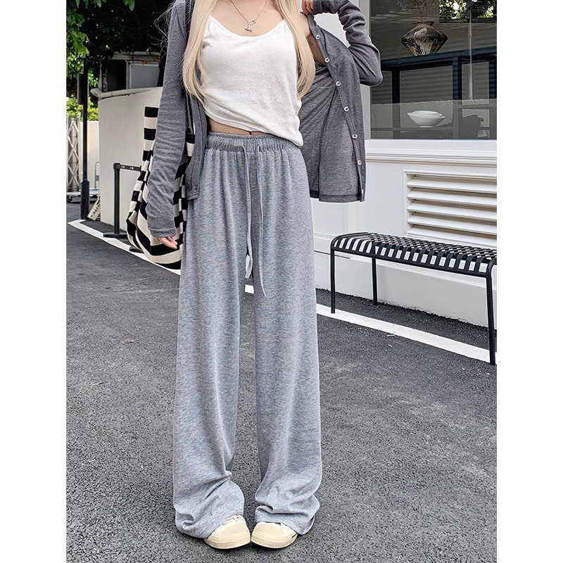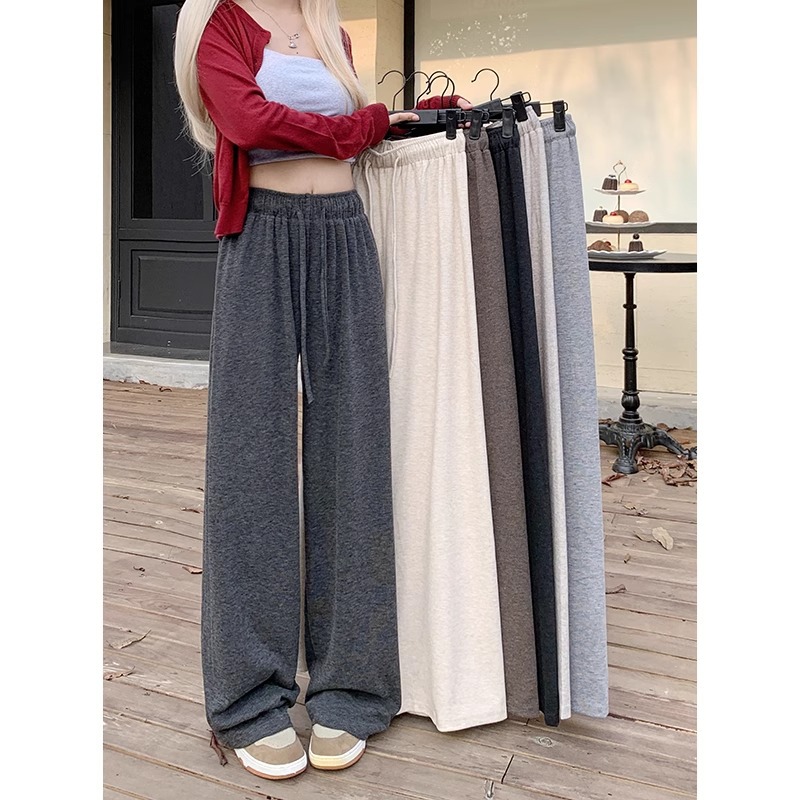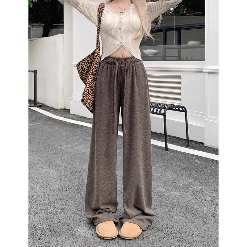 抽绳松紧高腰拖地休闲裤女秋季新款宽松显瘦百搭遛弯垂感长裤