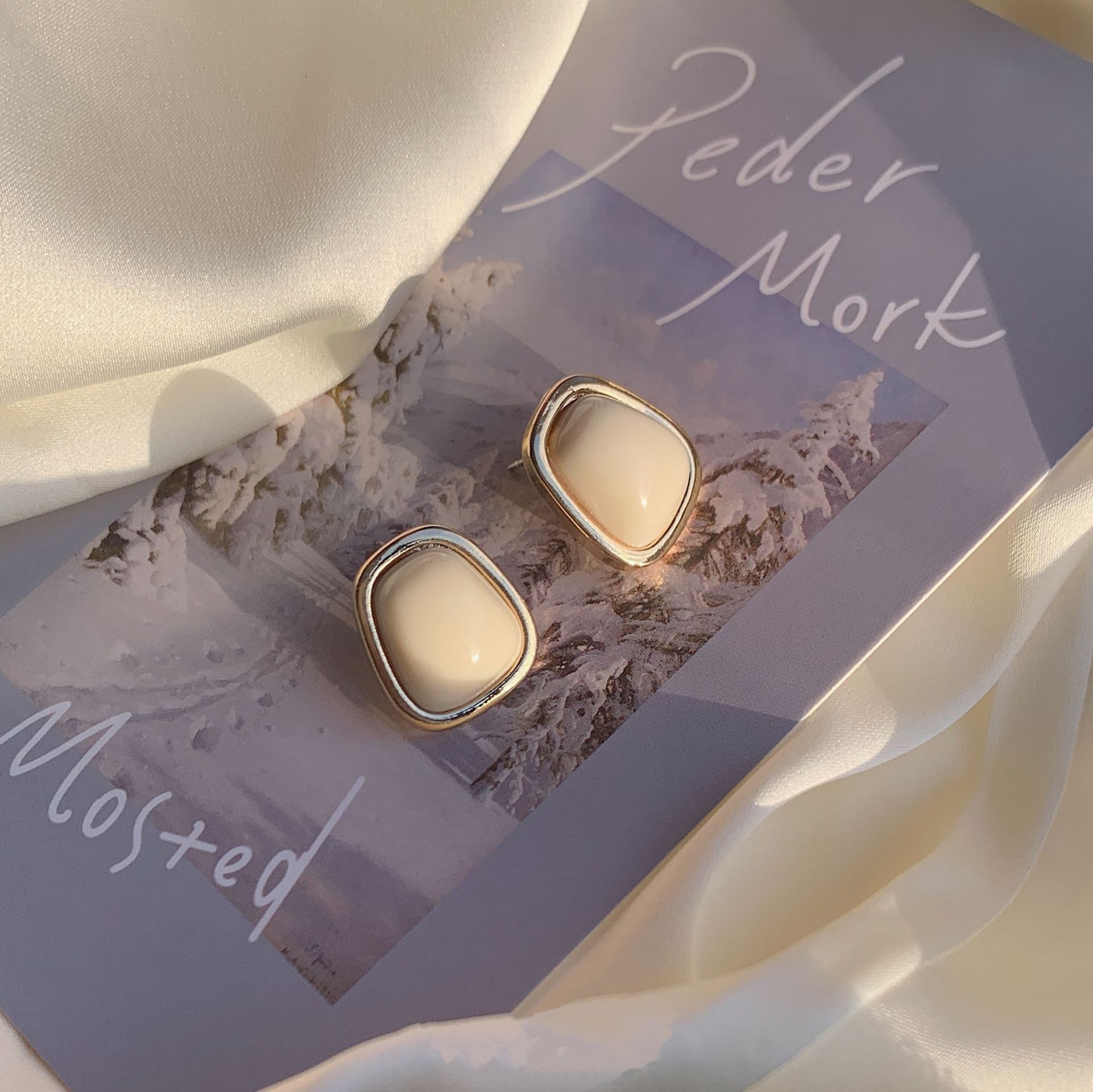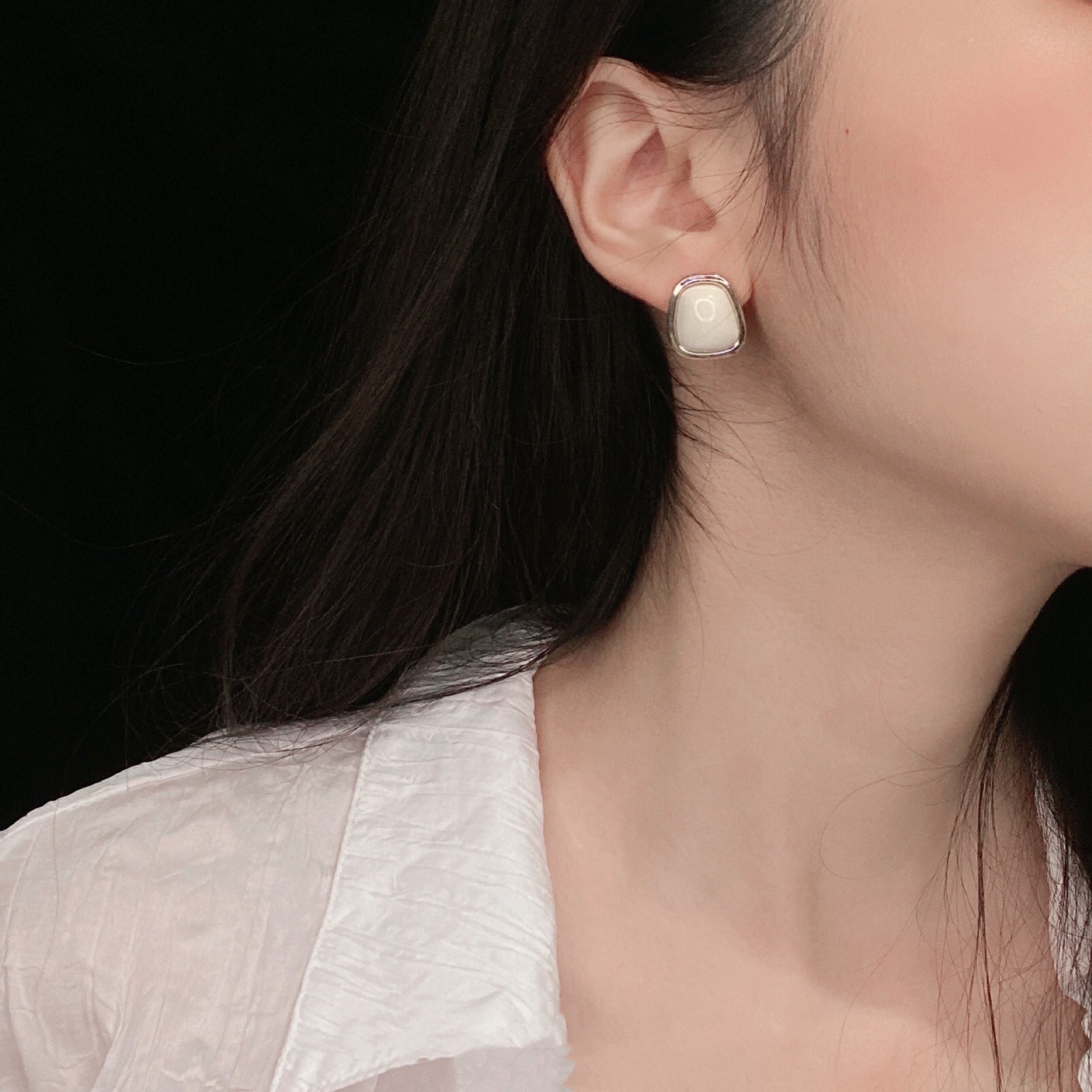 「伊豆情书」九十年代港风复古油画高级感小众优雅奶白色耳钉耳夹