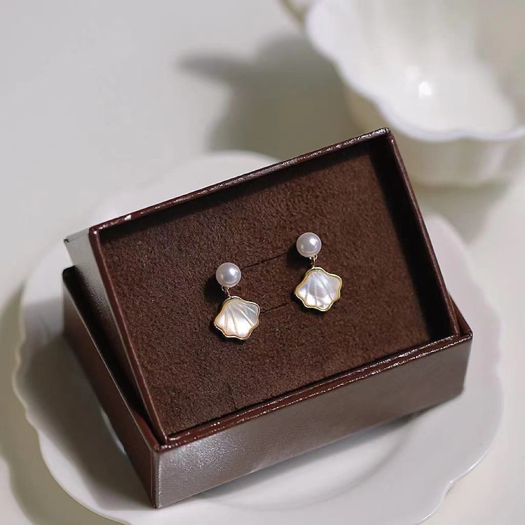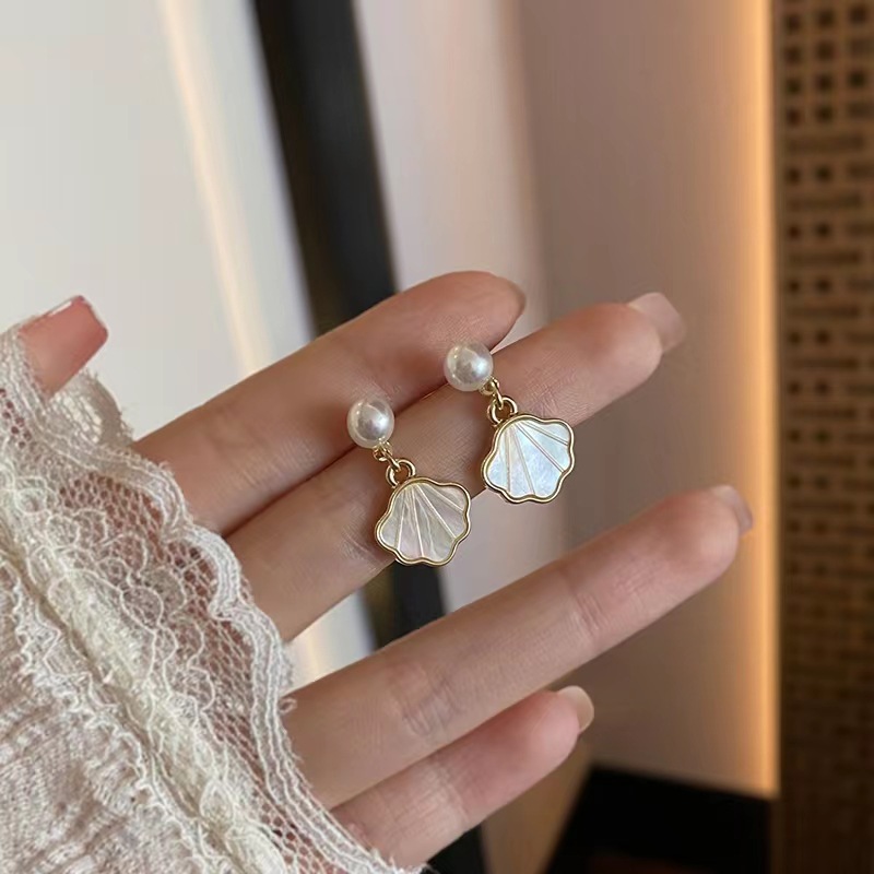 贝壳珍珠耳钉小巧设计高级感耳环新款潮耳坠夏天耳饰耳夹女