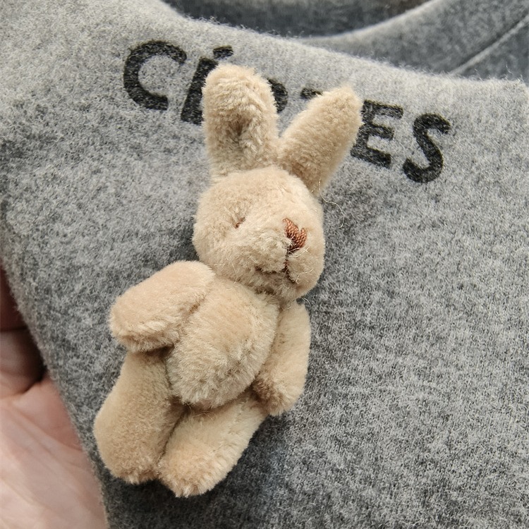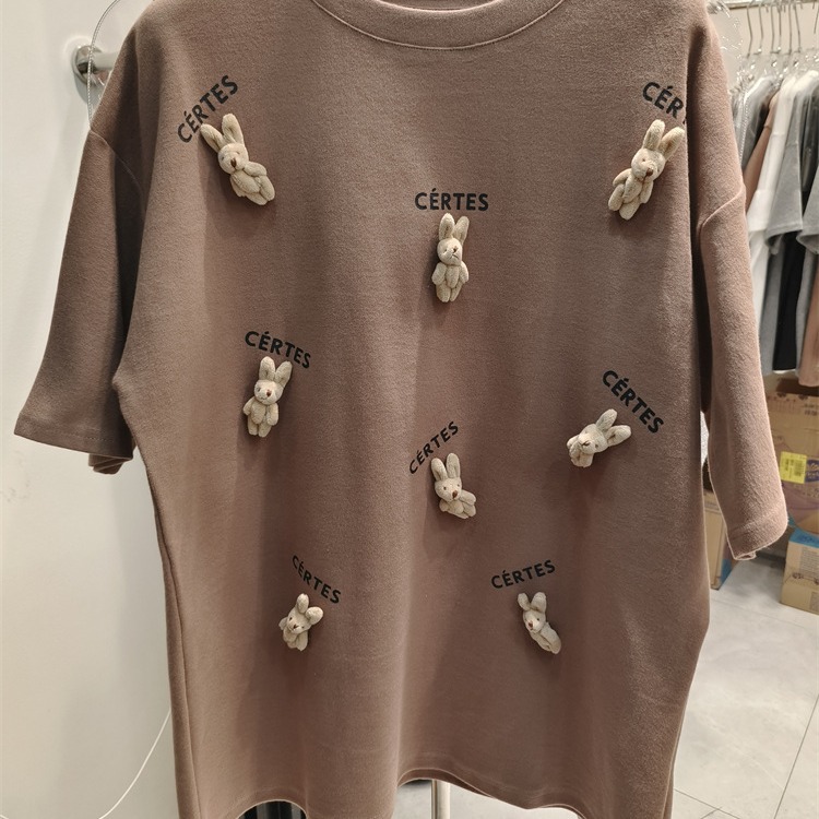 冬季加厚磨毛重工立体兔子半袖T恤欧货宽松大版中长款短袖上衣女
