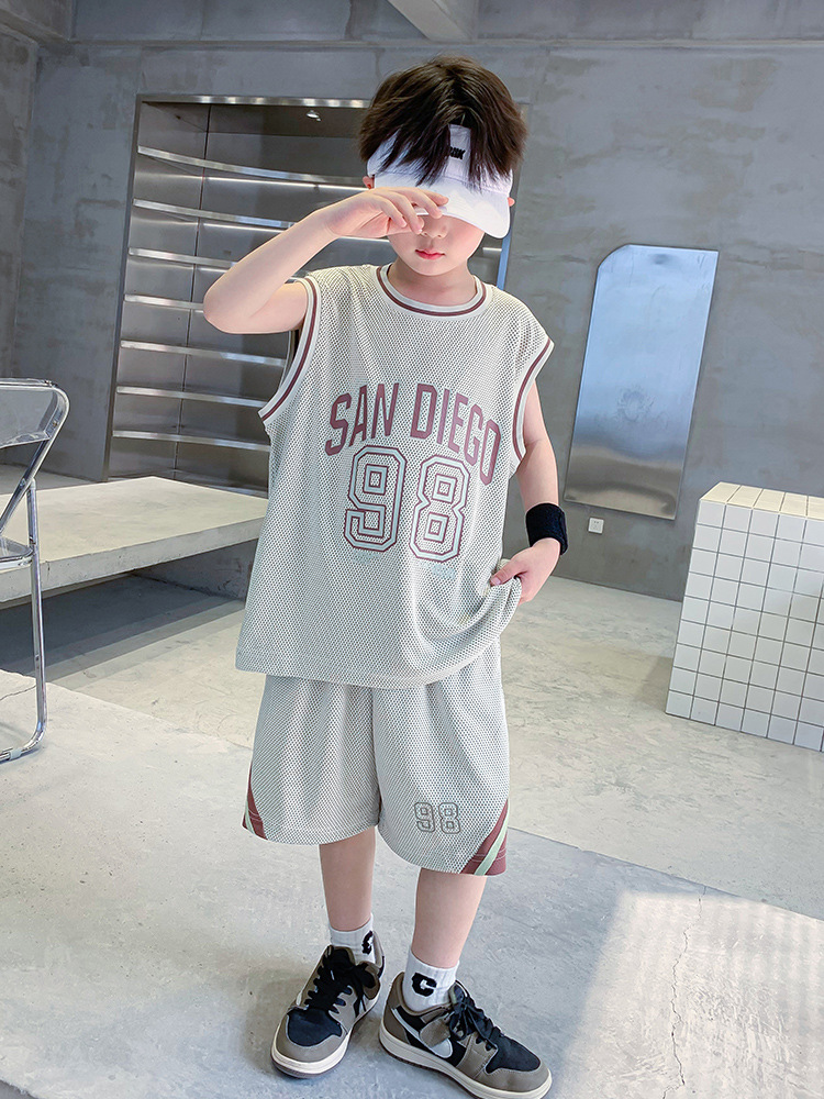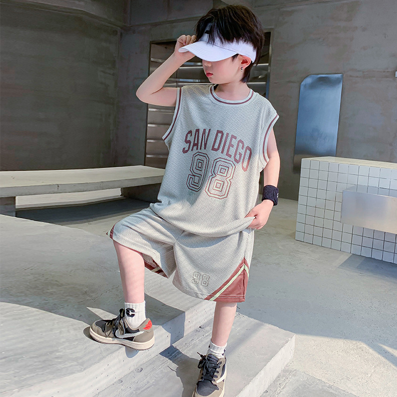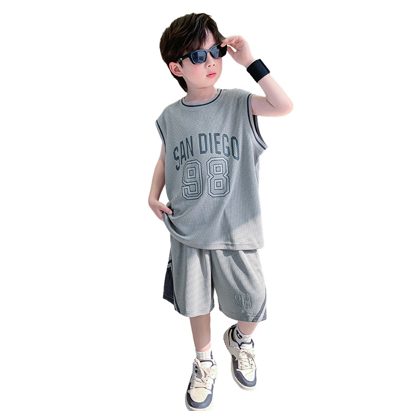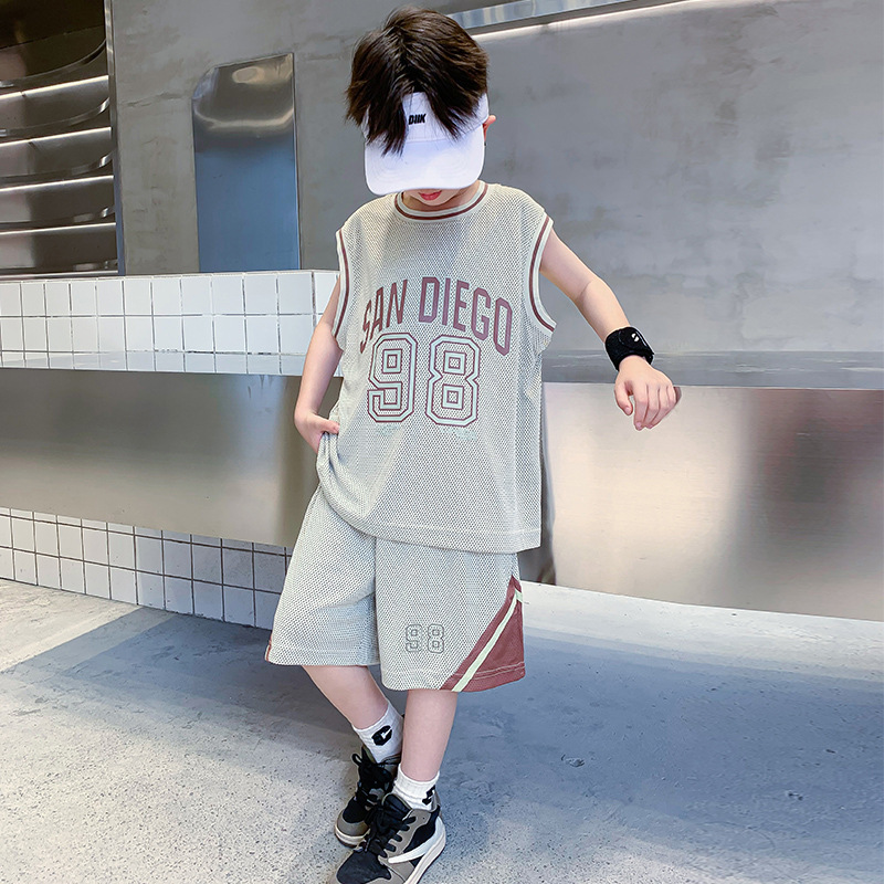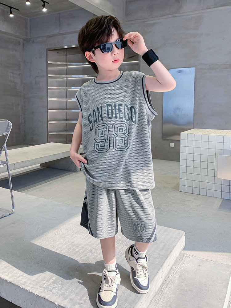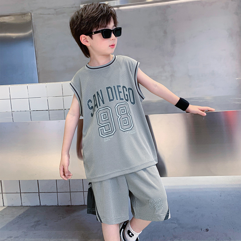男童夏装运动套装2025新款儿童夏季网眼透气无袖背心短裤篮球服潮
