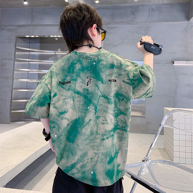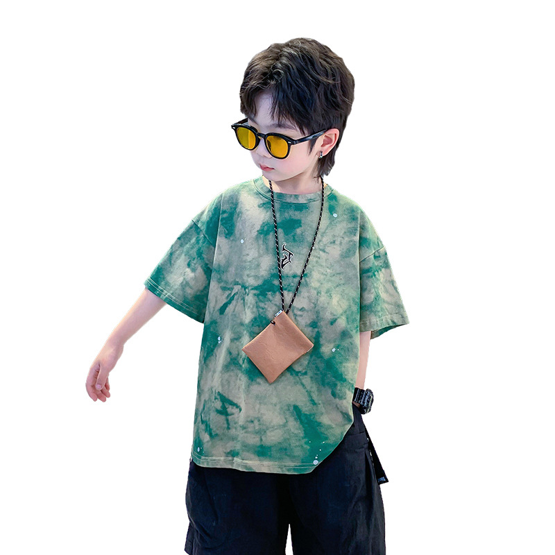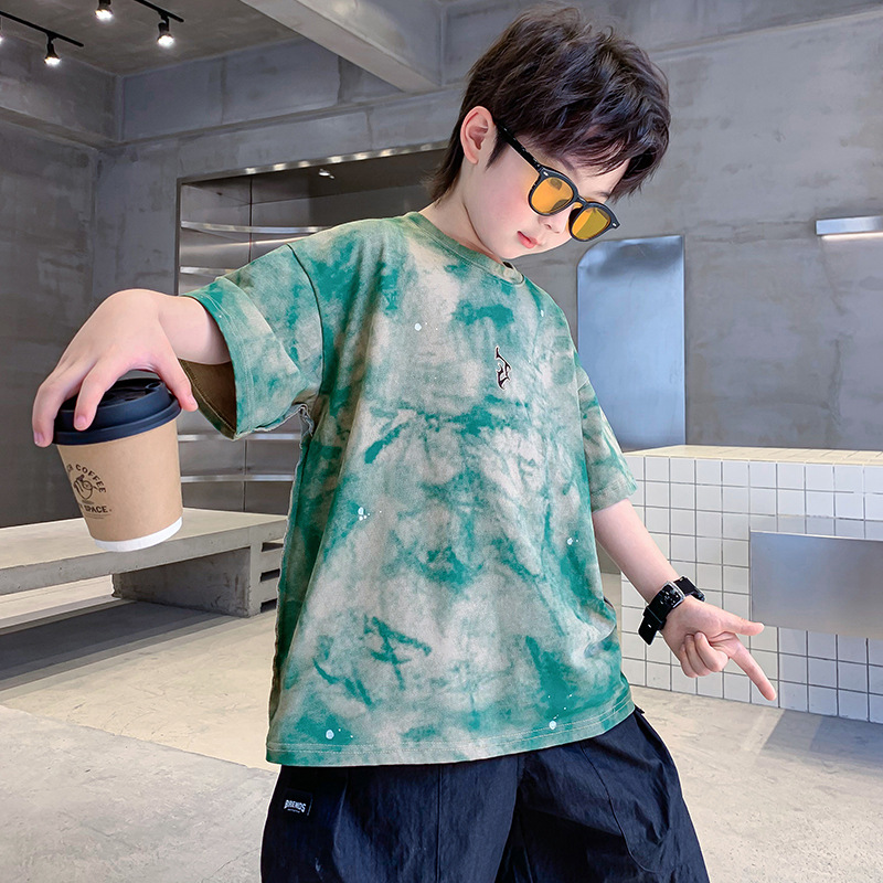 男童夏装潮牌扎染短袖T恤2025新款儿童男孩夏季酷帅宽松半袖上衣