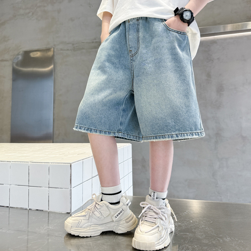 男童夏装牛仔短裤2025新款夏款个性卡通印花休闲中裤中大童五分裤
