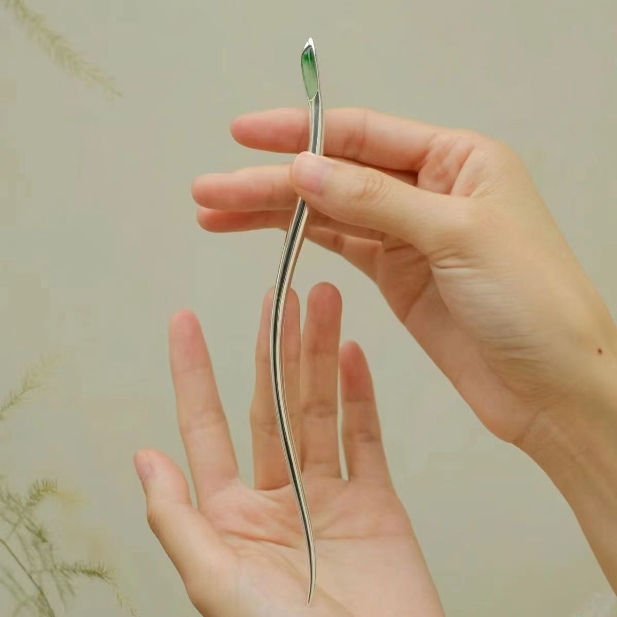 S925纯银镶嵌和田玉发簪宫廷古风国潮发饰簪子