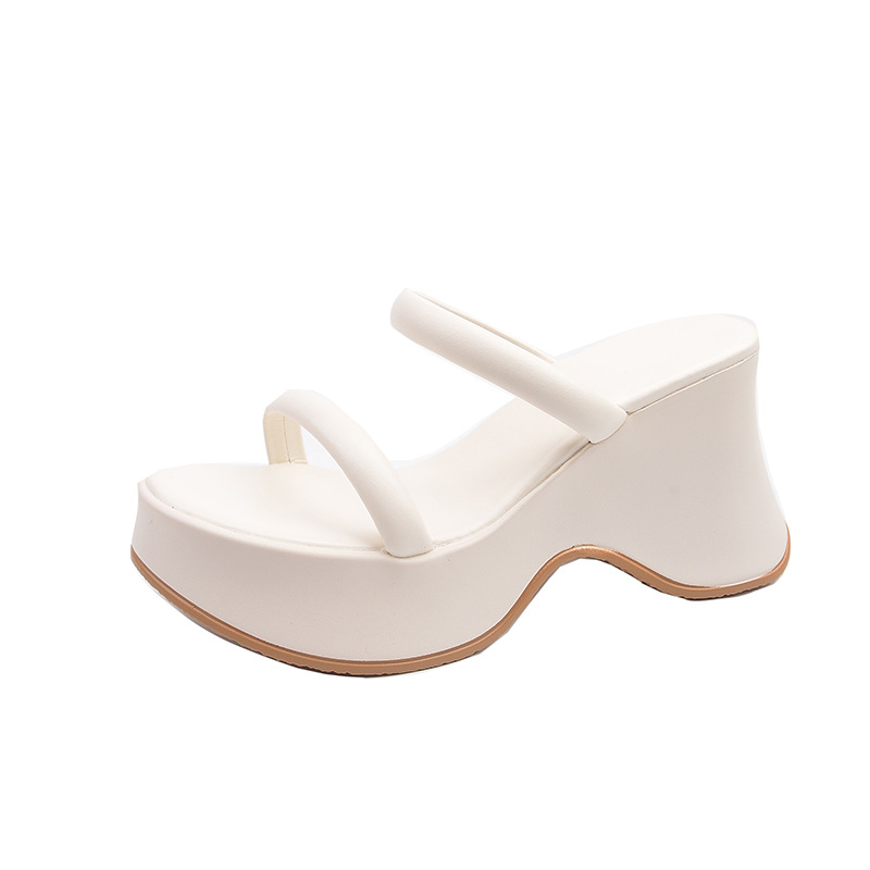 厚底增高一字凉拖鞋女夏季外穿2025年新款简约小个子百搭高跟凉鞋
