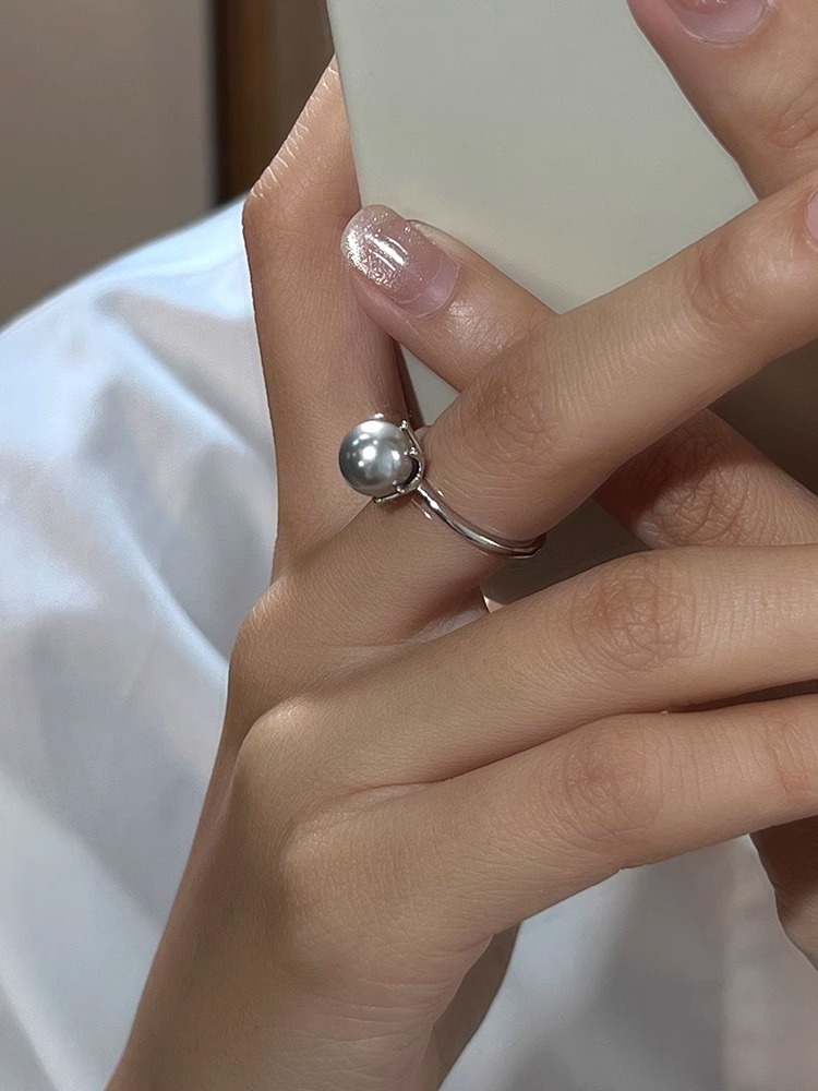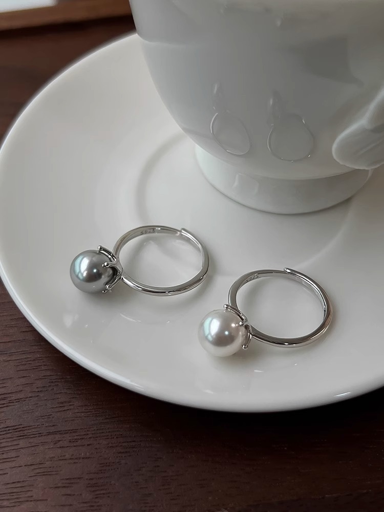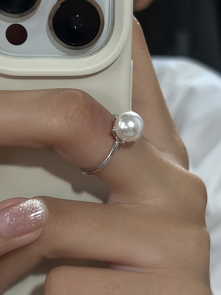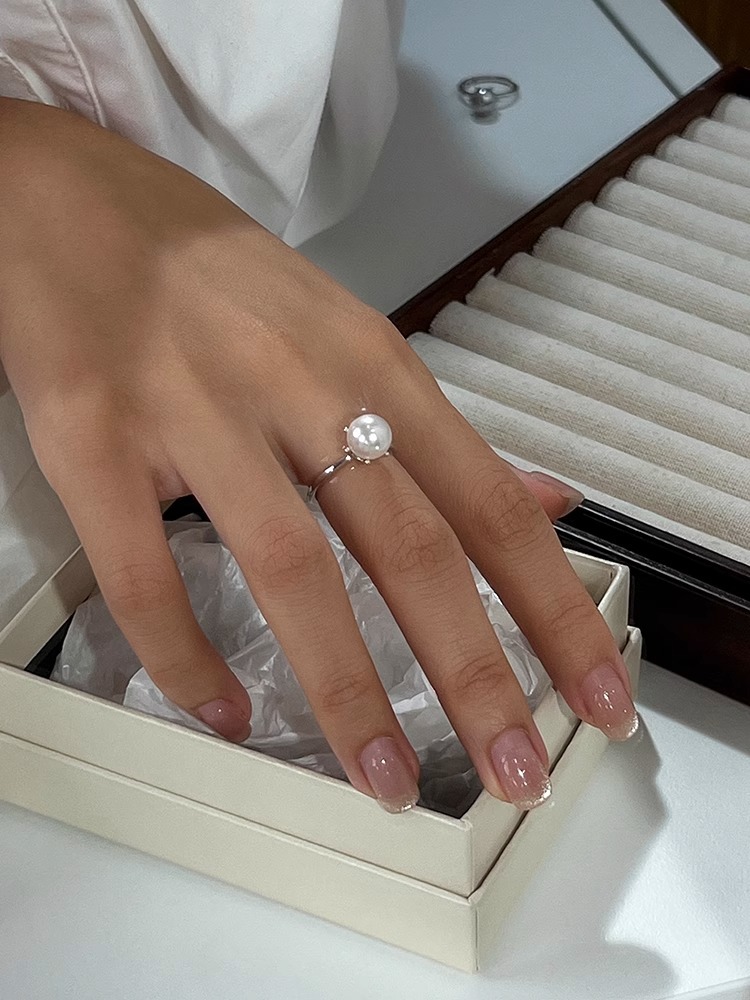 方糖家 简约经典素圈施家珍珠戒指可调节高级感食指戒女