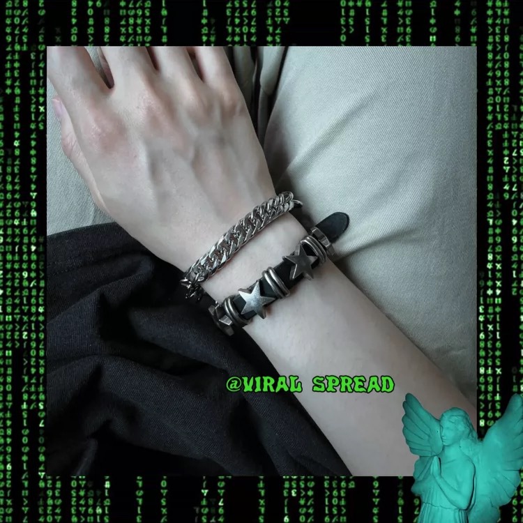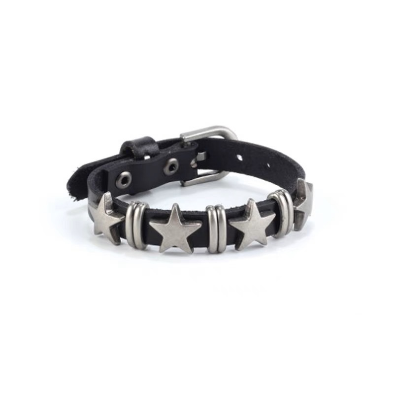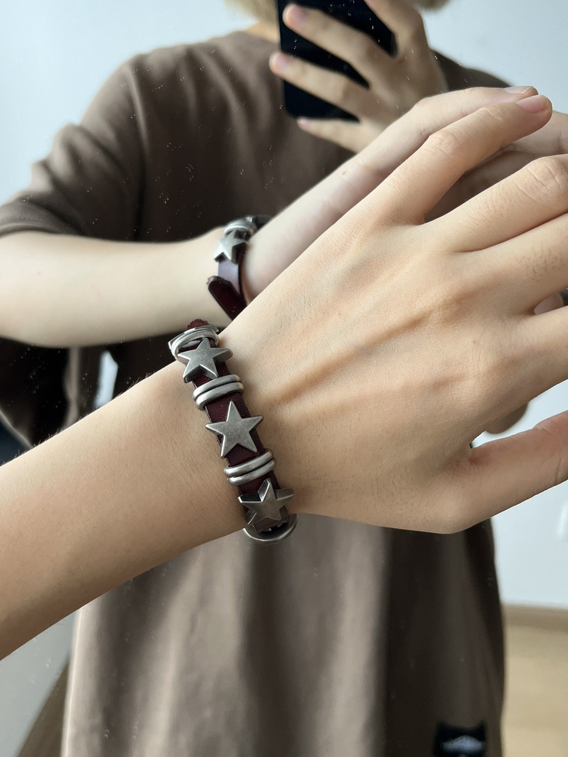 朋克暗黑摇滚星星真牛皮合金手链辣妹哥特复古男女同款情侣手环