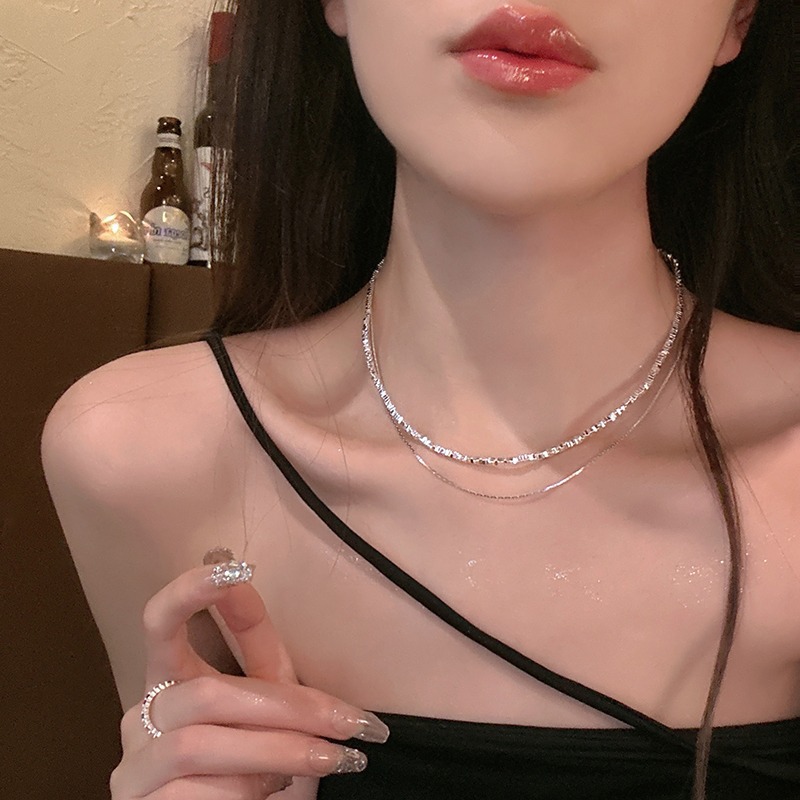 碎银子极细项链轻奢小众设计双层细闪叠戴锁骨链女高级感颈链配饰