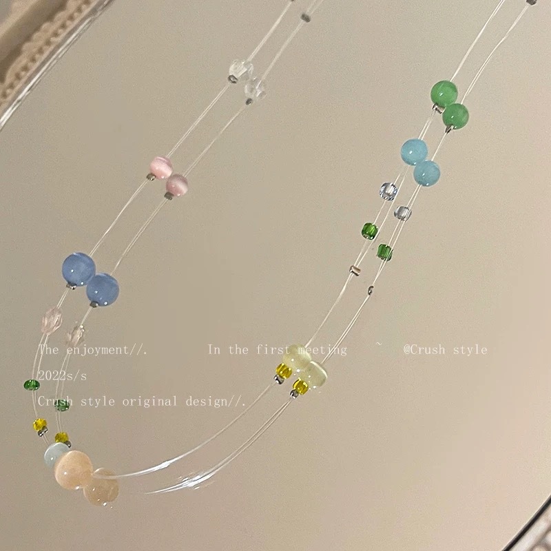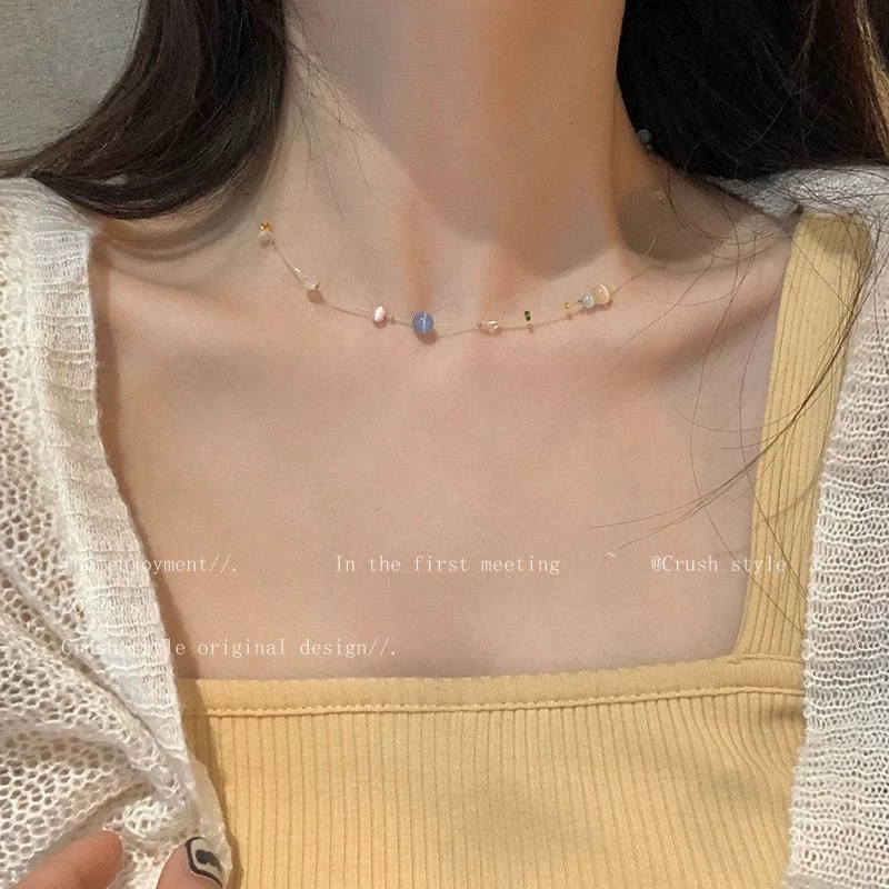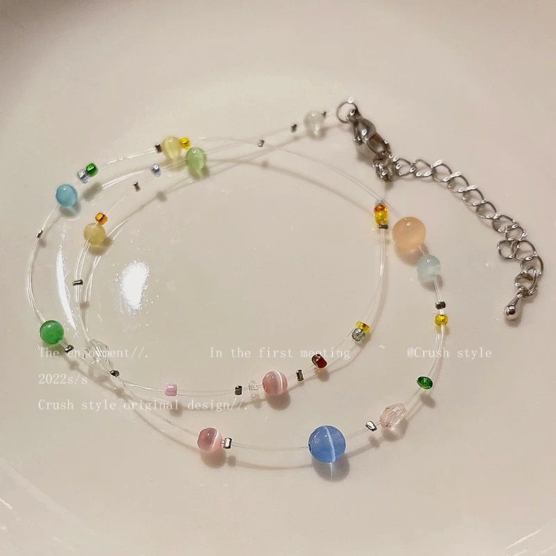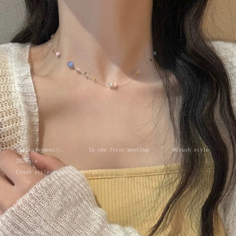 彩色琉璃串珠鱼线项链满天星辰超仙趣味锁骨链博主同款时尚锁骨链