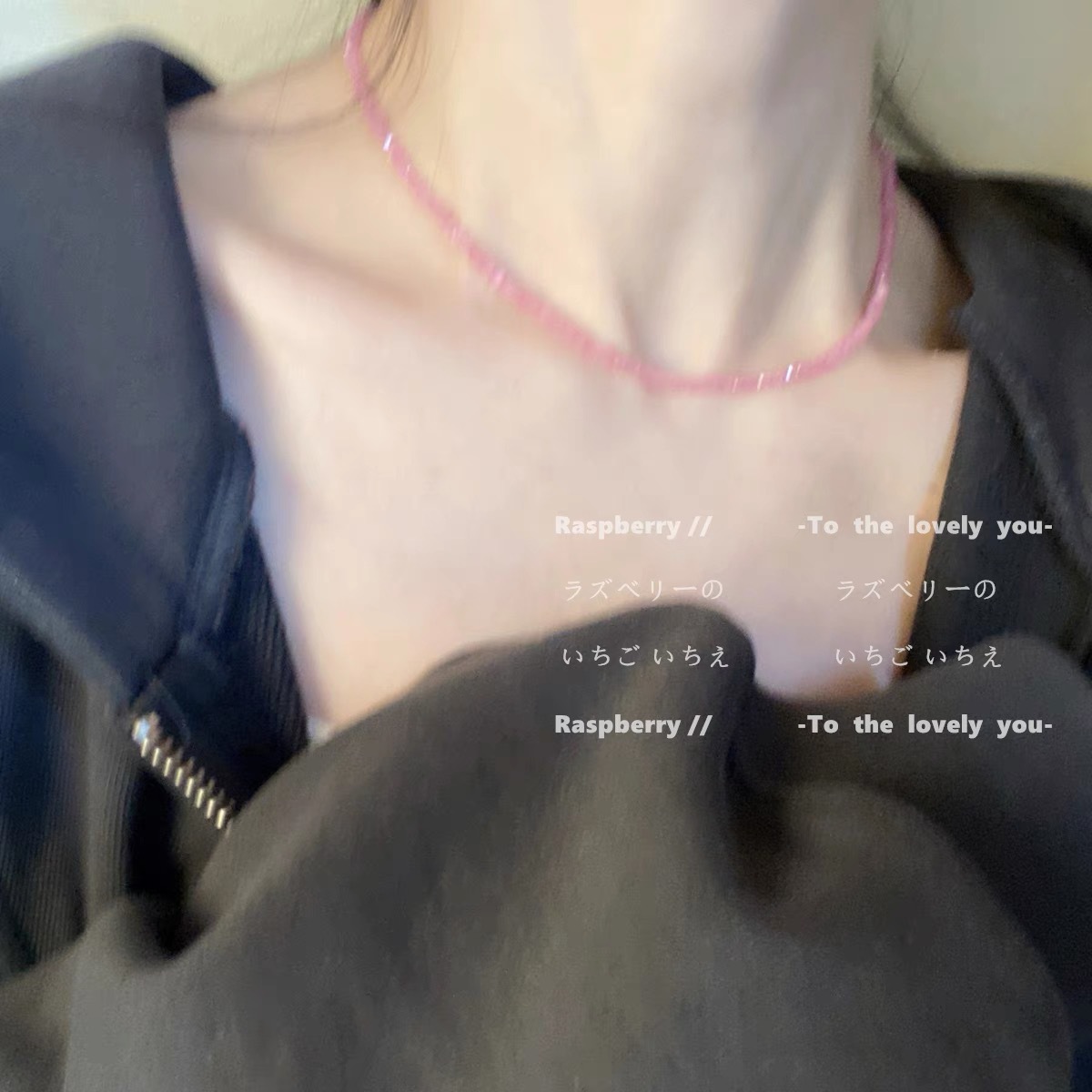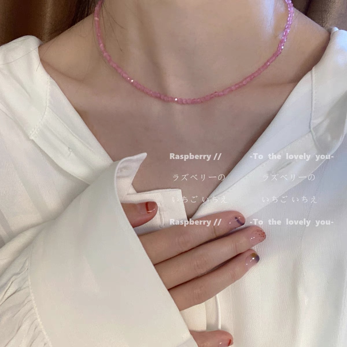 raspberry 爱了这粉zizi水晶项链 手工显白叠戴ins复古清新锁骨链