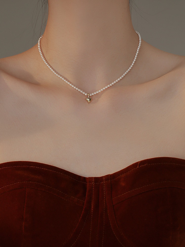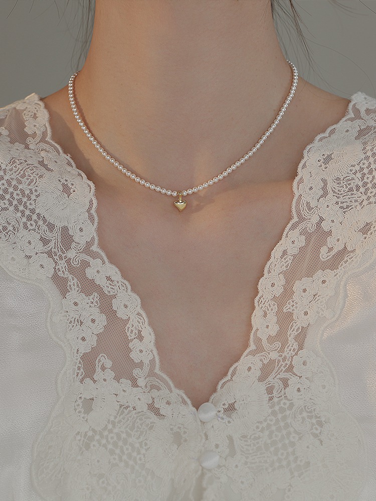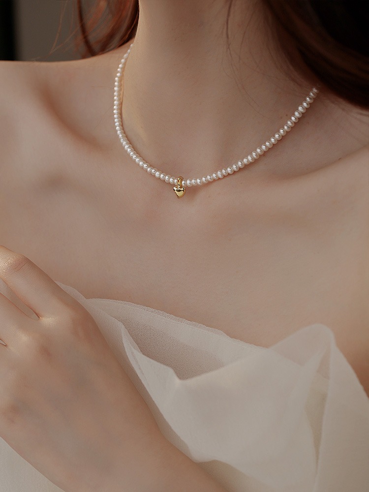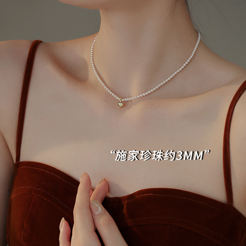 饰悟银饰爱心baby珍珠项链颈链锁骨链女小米珠法式项链新款