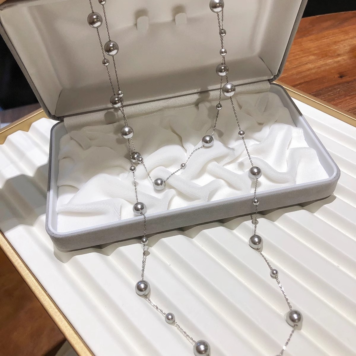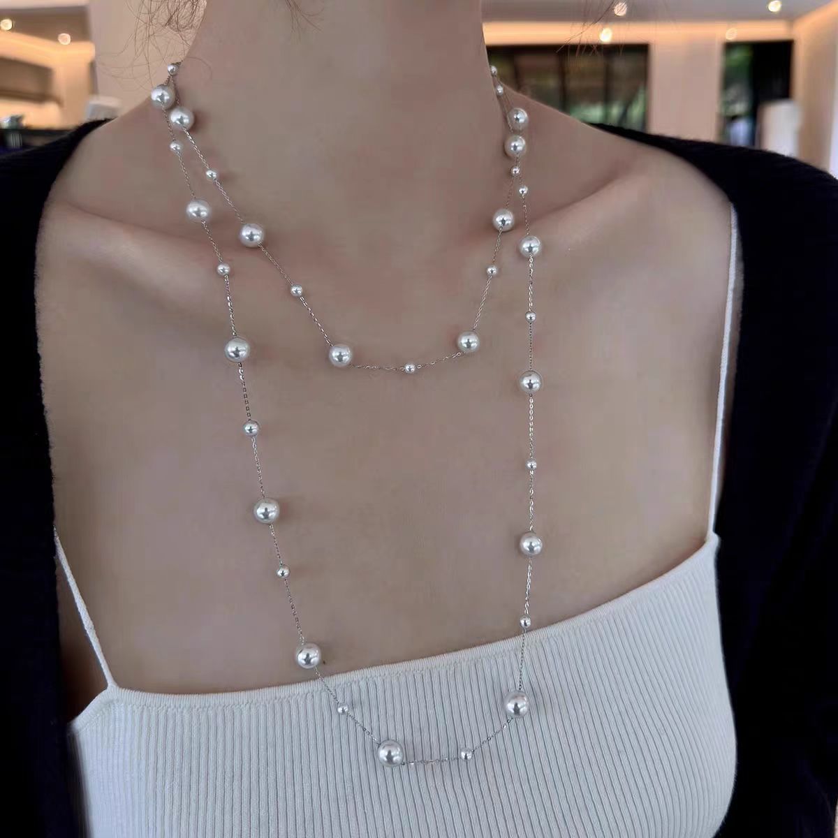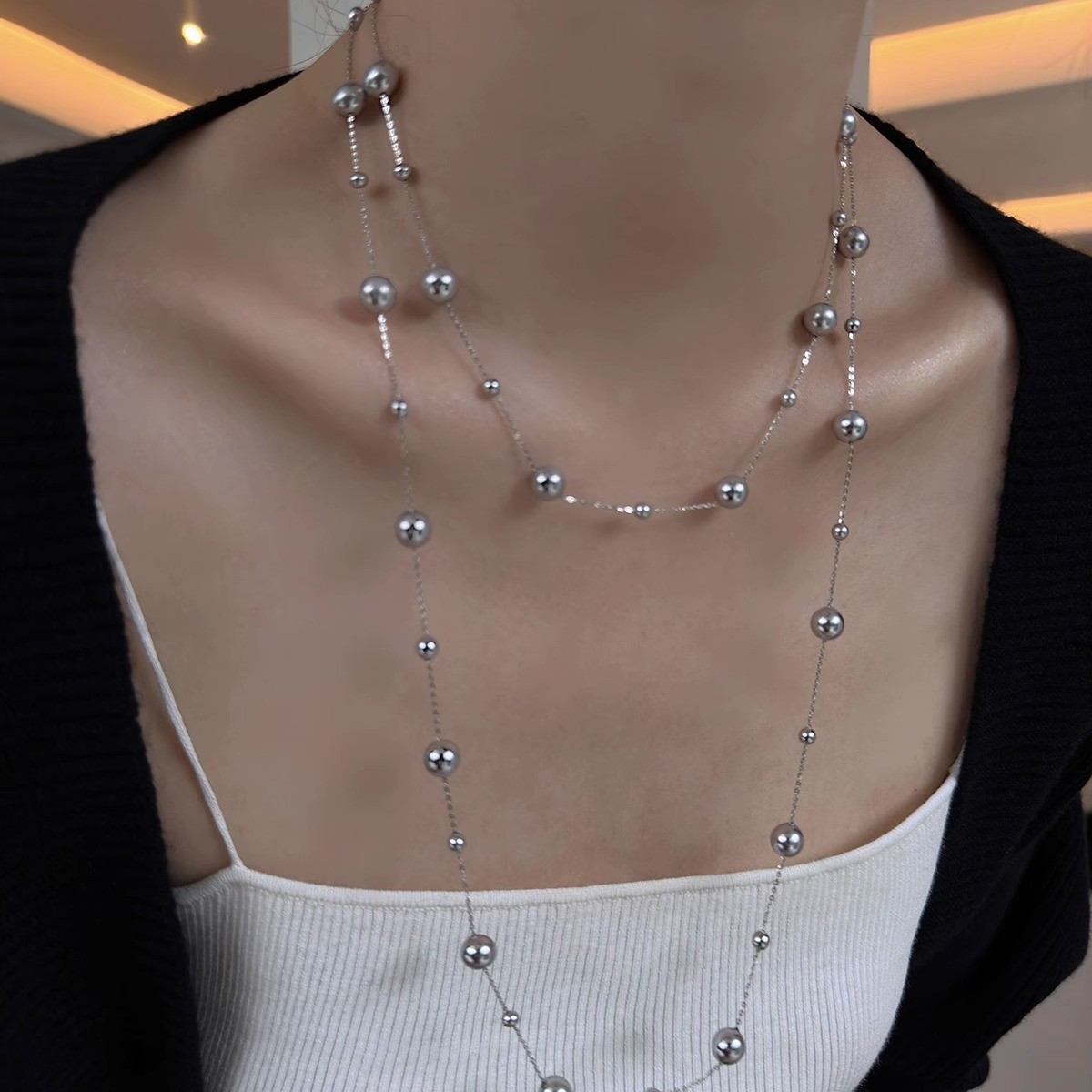 星际长款满天星S925银灰珍珠项链毛衣链通勤质感间珠高级感女