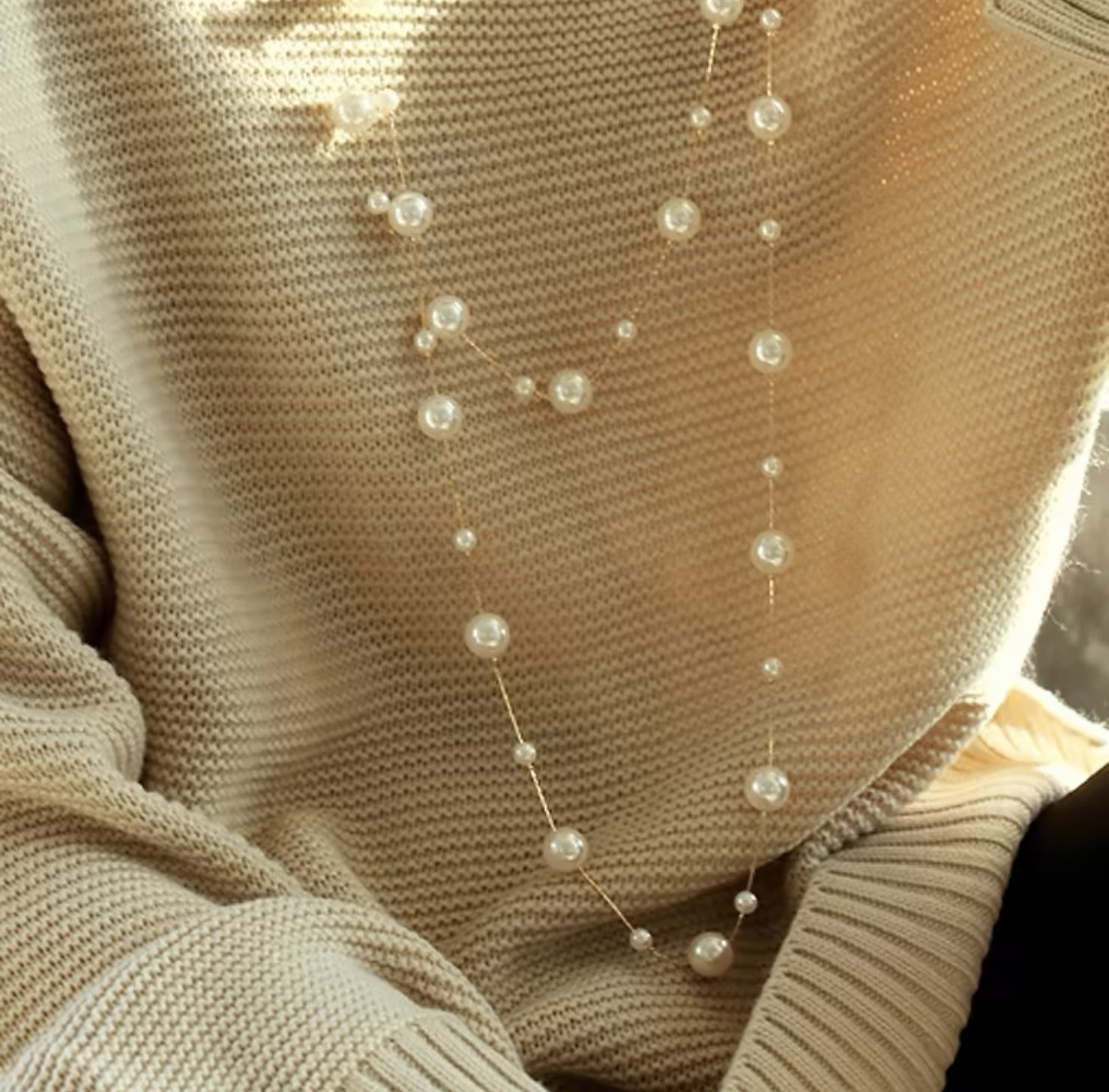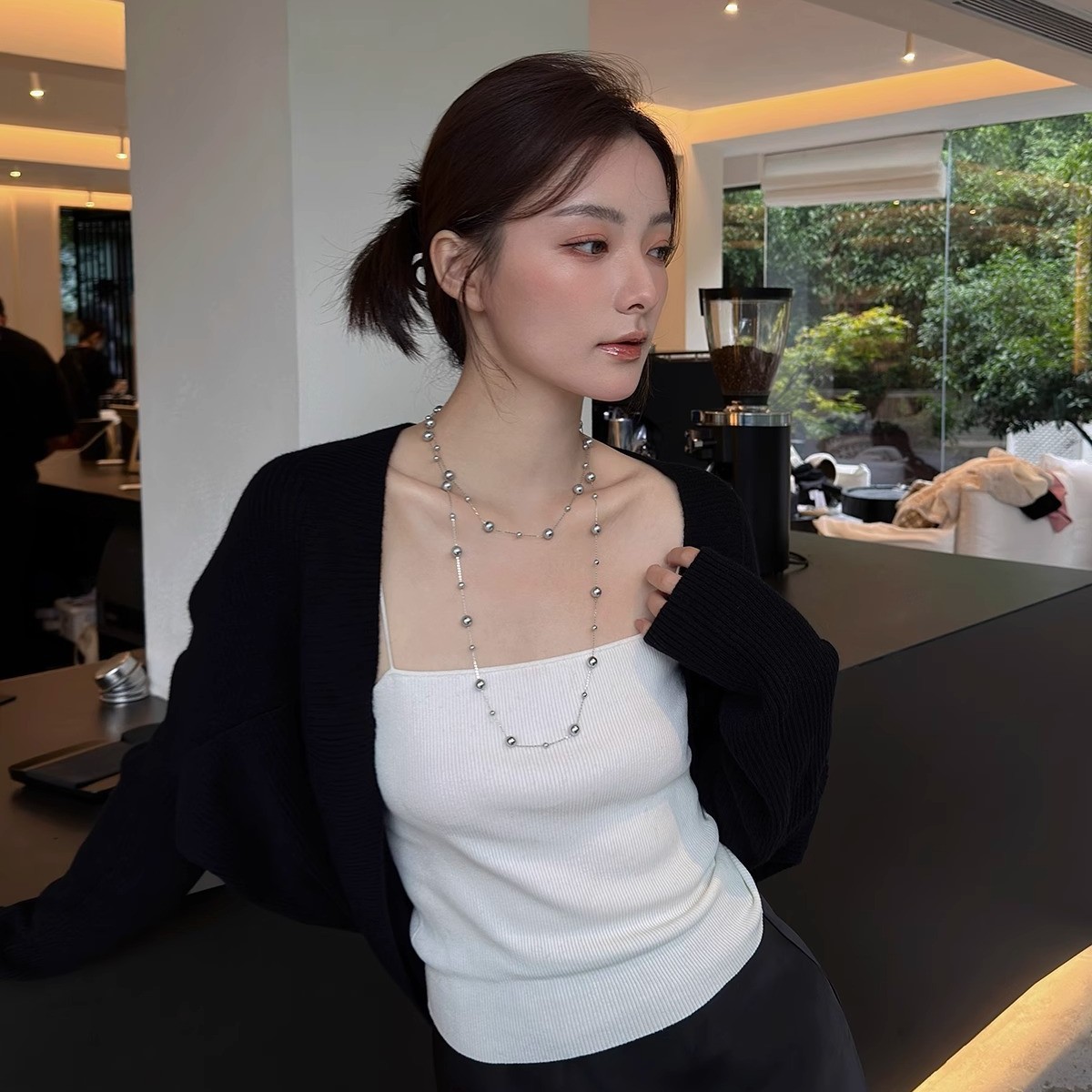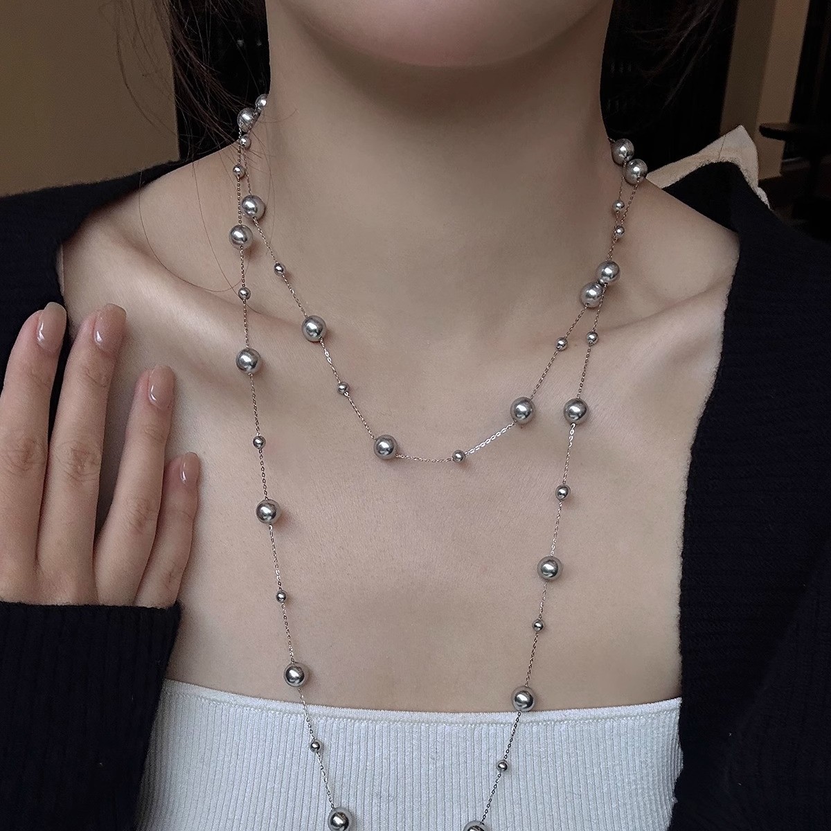 星际长款满天星S925银灰珍珠项链毛衣链通勤质感间珠高级感女