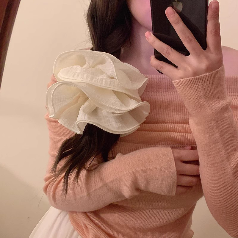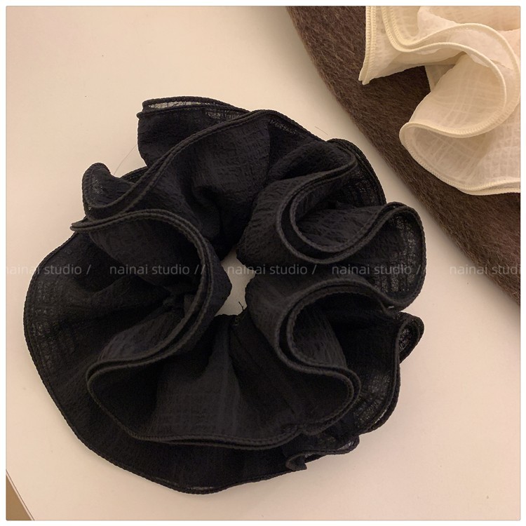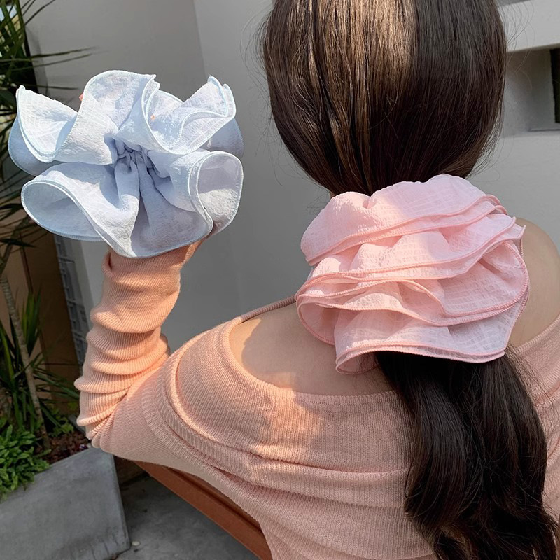 早春新款~四层超大号!褶皱粉色蓝色慵懒风低丸子头发绳大肠发圈