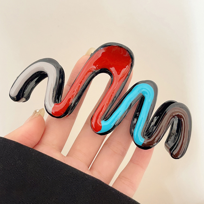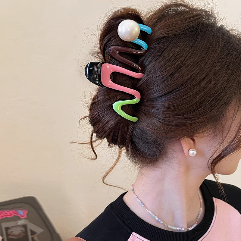 彩色波浪抓夹女新款发夹高级感后脑勺鲨鱼夹大号夹子头饰发饰