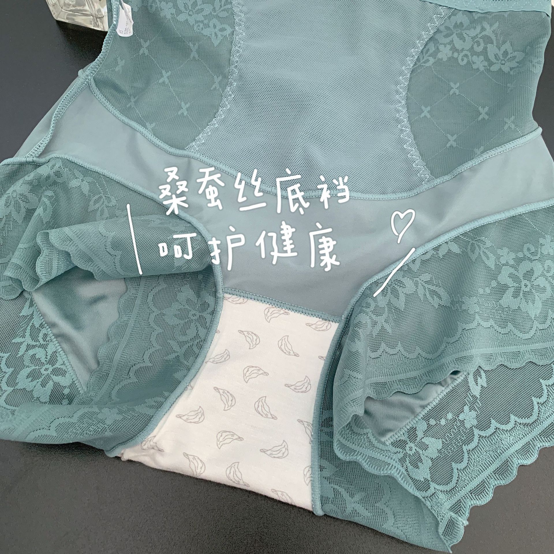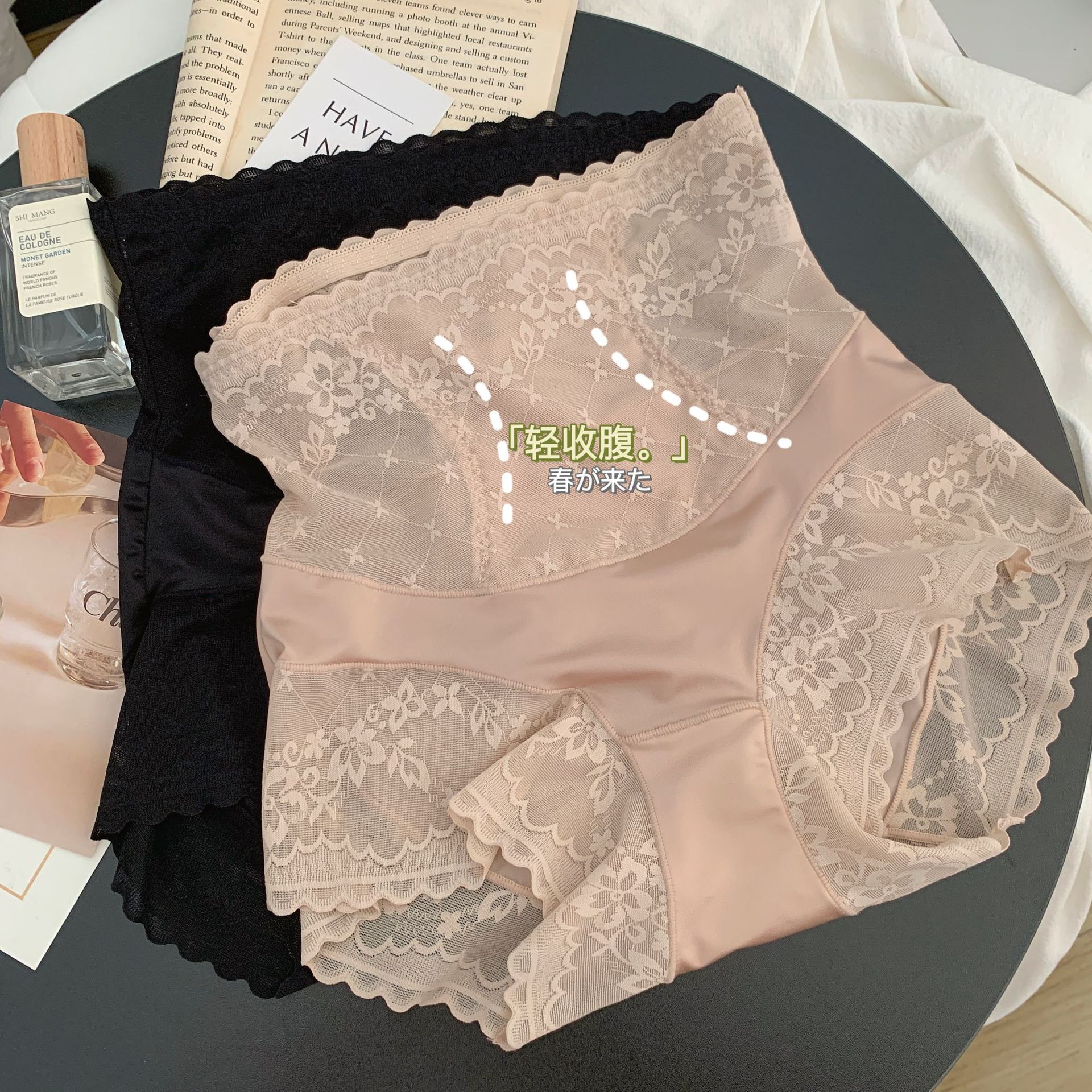 轻奢高腰微收腹花卉蕾丝内裤女士透气桑蚕丝裆塑身包臀三角裤