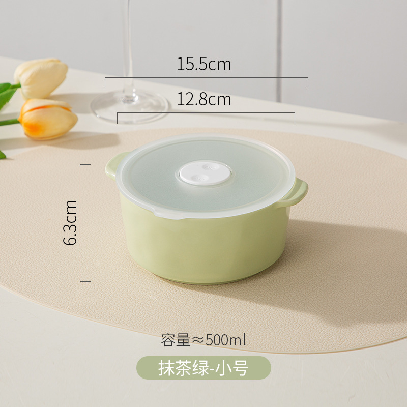 陶瓷奶油风双耳保鲜碗带盖纯色餐盒创意饭盒家用冰箱微波饭碗便当