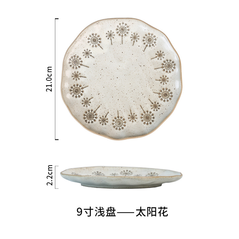 日式粗陶盘子釉下彩餐盘家用菜盘高级意面盘商用特色陶瓷餐具