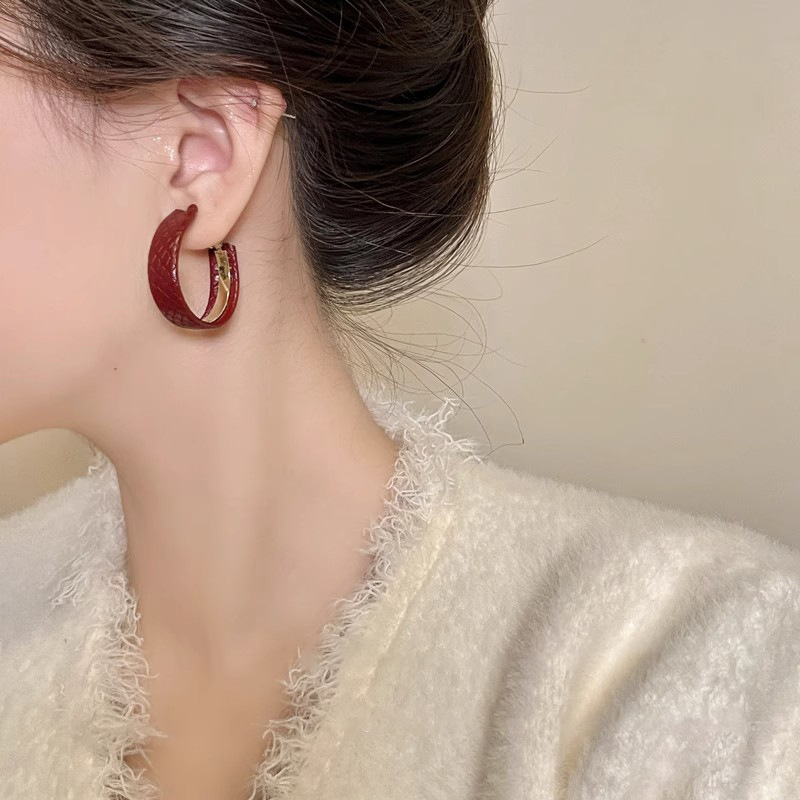 卿本佳人~复古安可拉红色皮革圈圈耳环女秋冬氛围感耳钉气质耳饰