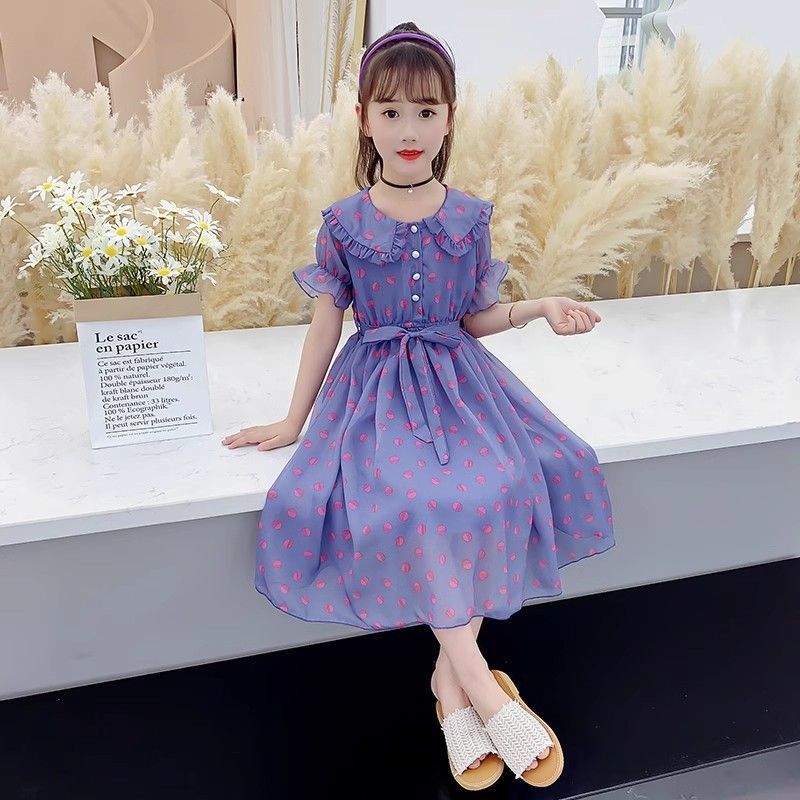 2025新款女童夏装连衣裙洋气女孩夏款公主裙时髦娃娃领中长裙子潮