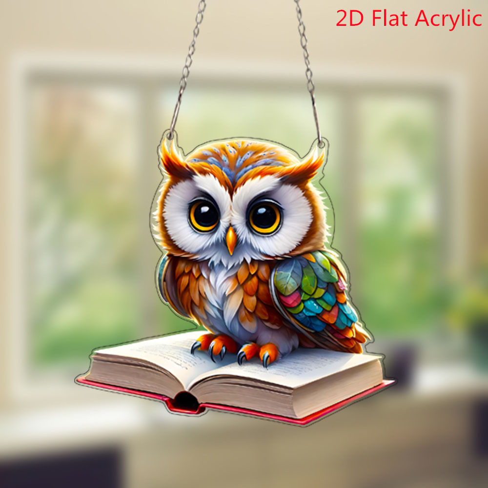跨境卡通可爱小鸟亚克力窗户门挂艺术节日场景装饰挂件看书的动物