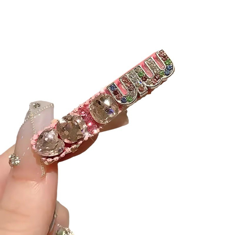 粉色高级感水钻鸭嘴夹字母发夹女韩版2025新款侧边夹刘海夹一字夹