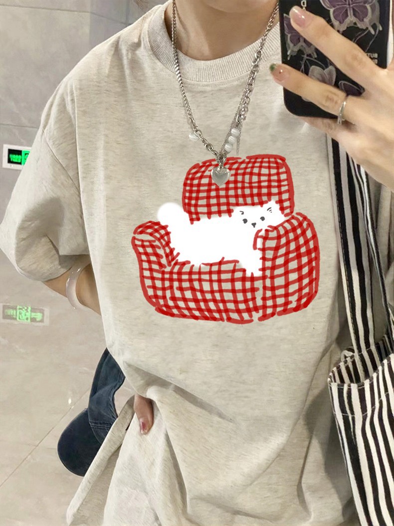 纯棉200斤短袖t恤女时髦新款夏季小众设计感美式高街宽松半袖上衣