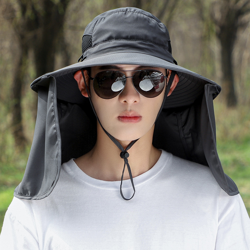 帽子男夏天渔夫帽大披肩透气钓鱼帽大檐防晒遮阳帽登山太阳帽